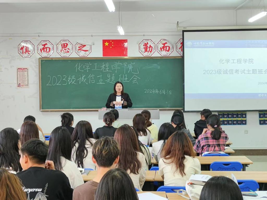 为强化考风考纪教育,切实加强学风建设,进一步端正考风、严肃考纪,增强同学们的诚信考试意识,化学工程学院于2024年6月1日-3日各年级辅导员开展考前诚信教育主题班会。