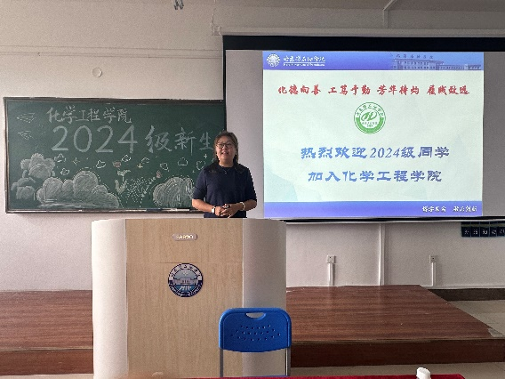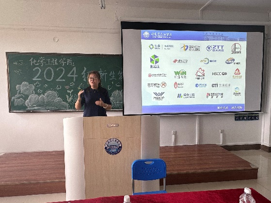 学院院长杨昕对各位新生家长的到来表示衷心的感谢和热烈的欢迎。从学院的办学历史、专业设置及培养方向、师资力量、教育培养理念、教学科研能力、学生培养质量等方面,对学院进行了详细的介绍。并着重通过学生实习就业企业的视频和图片,让学生及家长深入了解绿色化工的发展成效,扭转他们过去对于化工行业的偏见和误解,让学生及家长对于化工行业有了一个全新的认识,对于未来的学习生活以及就业发展产生美好的憧憬。她表示学院坚持以立德树人为根本任务,不断加强学科专业内涵建设,全面提升教育教学水平和人才培养质量,全力为学生提供良好的发展平台,助力学生潜能发掘和综合素质提升。