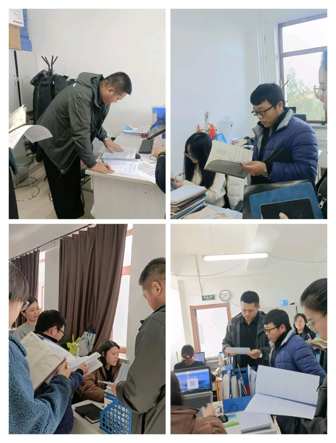 随后,检查组深入各教研室对新入职青年教师的教学文件进行了随机抽检。对于教学文件的规范性给予充分肯定,但同时也指出授课计划作业数量与实际布置数量存在偏差、作业批改不够及时等问题。
