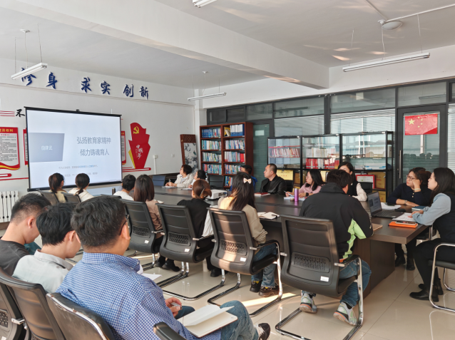 陈东雪老师结合自身培训所学,依次向大家分享了4位专家的讲座内容。大连海事大学曲建武教授的《弘扬教育家精神,倾力铸魂育人》,结合自身四十余年的工作经验与深刻感悟,通过一张张记载暖心时刻的照片、一封封满载真情实意的书信、一段段承载谆谆教诲的故事,生动诠释了作为一名人民教师“传道授业解惑,无声润物更护花”的使命担当与“春风化雨育人,照亮学子求学路”的殷切守望,更用实际行动书写了“一辈子只做一件事——陪伴学生”的铮铮誓言。辽宁师范大学郑艳教授的《高校教师的课堂教学艺术》,提出教师应对教学过程有艺术化的追求,在细节处巧妙构思,针对课程内容创设课堂情景,培养自身的“五种意识”,树立大备课观。李玉斌教授的《教育数字化如何促进课堂转型——教学的视角》,通过“三钱之问”、“两个大局”等角度阐述了数字化赋能课堂转型的重要性,介绍了多种能够有效提升教师数字素养的数字化工具。闫守轩教授的《高校青年教师职业生涯规划:为何与何为》,强调青年教师的成长必由之路就是要做清晰的发展规划,要时刻牢记规划的重要性,努力创造“第二生命周期曲线”。全院教师认真聆听,受益匪浅。
