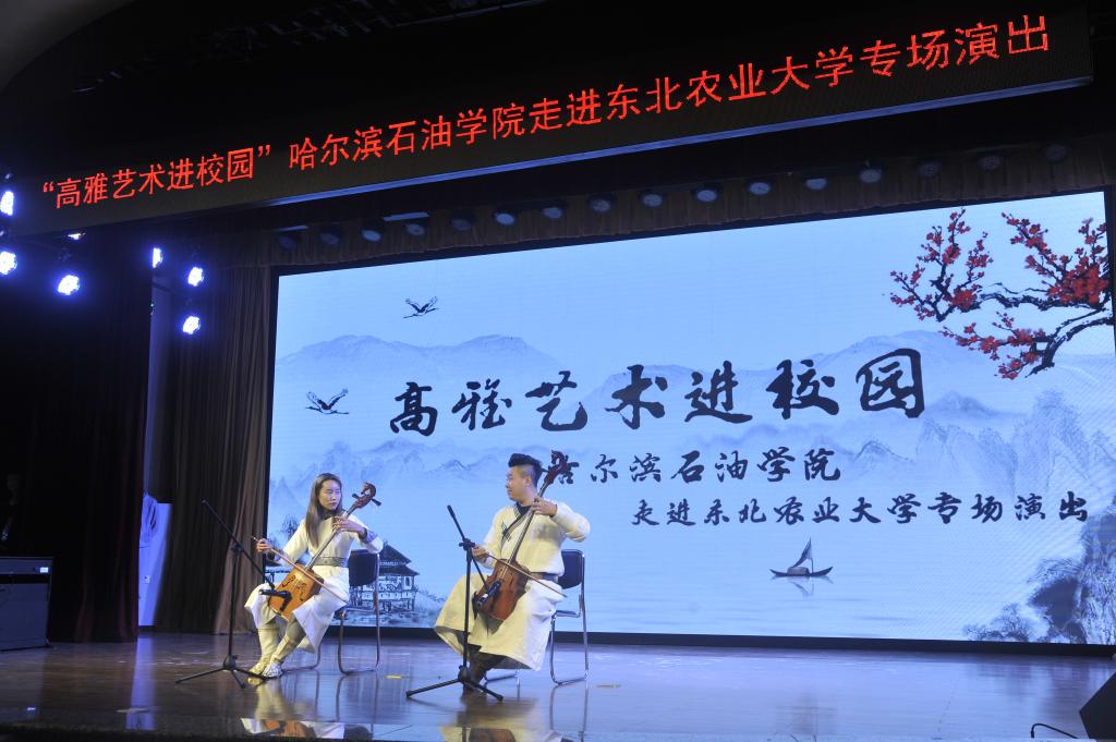 秉承“走近大师、感受经典、陶冶情操、提高修养”的理念,为丰富高校师生课余生活,促进校际间文化交流,10月14日,冰球突破豪华版官方网站高雅艺术进校园专场音乐会走进东北农业大学,此次演出团队由冰球突破豪华版官方网站艺术学院师生组成。冰球官网党委书记焦光纯、团委书记王锦石及东北农业大学党委副书记马宏坤、团委副书记高天琦、团委副书记李卡一起观看了此次演出,感受高雅艺术的独特魅力。