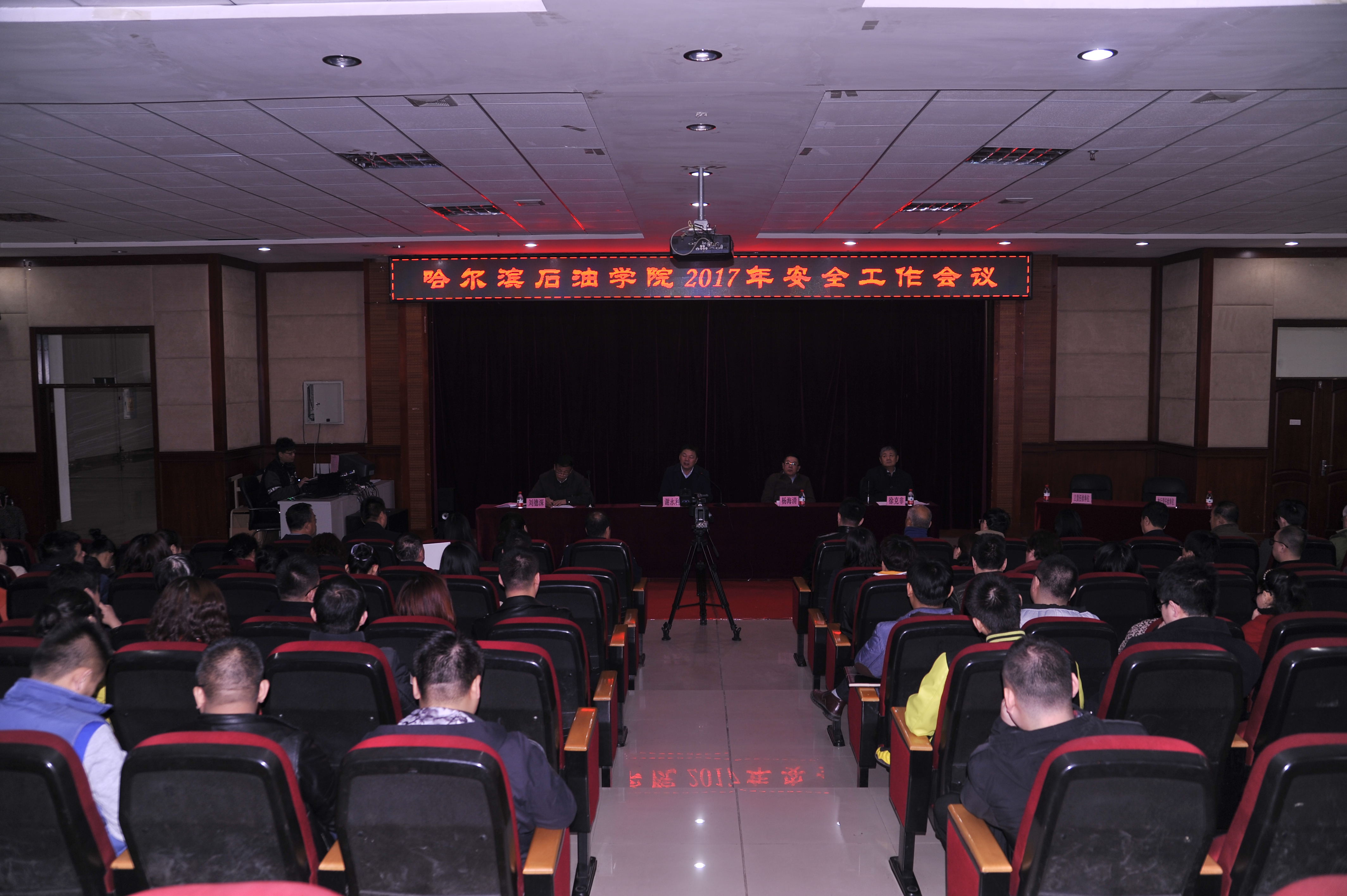 3月31日冰球突破豪华版官方网站召开2017年安全工作会议。会议由党委副书记、副校长刘德深主持,党委书记、校长谢永利,副校长杨海清,副校长徐克非出席会议并讲话,全校科级以上干部参加了会议。