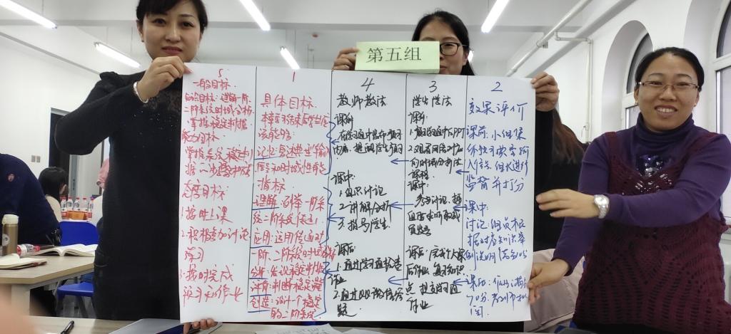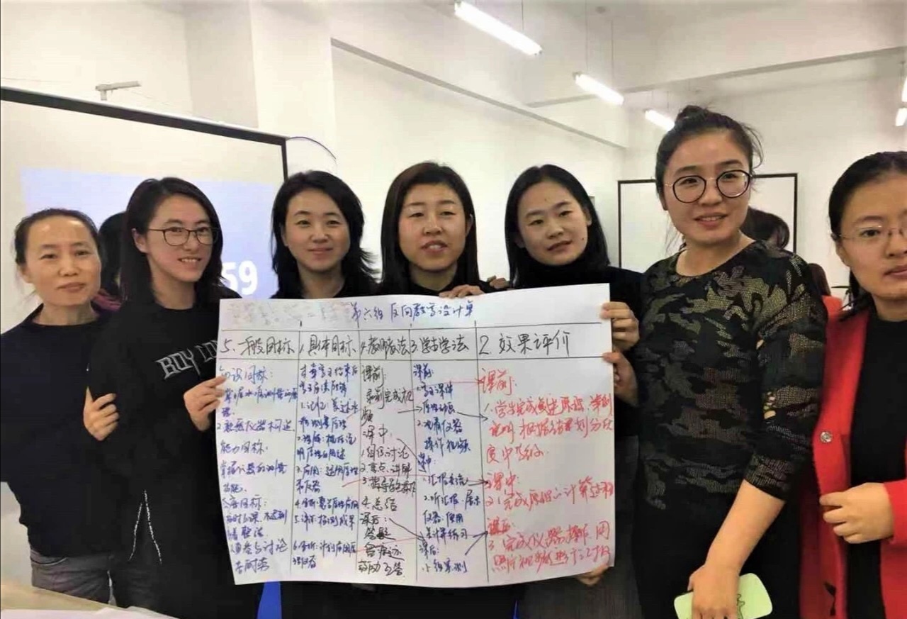 培训过程中,李主任以问答、师生对话、小组协作、分享交流等多种形式与教师们交流互动,各组教师积极思考、讨论、分享,完成了“反向教学设计单”的设计工作。教师们反映通过此次参与体验,他们对以学生为中心的反向教学设计的每一个环节的具体操作有了更为深入的认识和理解。