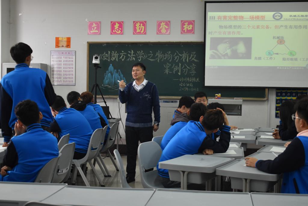 2019年11月23日,第三次“创新方法学”全国公开见面课之“物场分析及案例分享”在冰球官网举办。此次公开课由“创新方法学”师资团队主讲教师、黑龙江科技大学刘训涛副教授讲授,冰球官网50余名学生观看全国公开课的现场直播。
