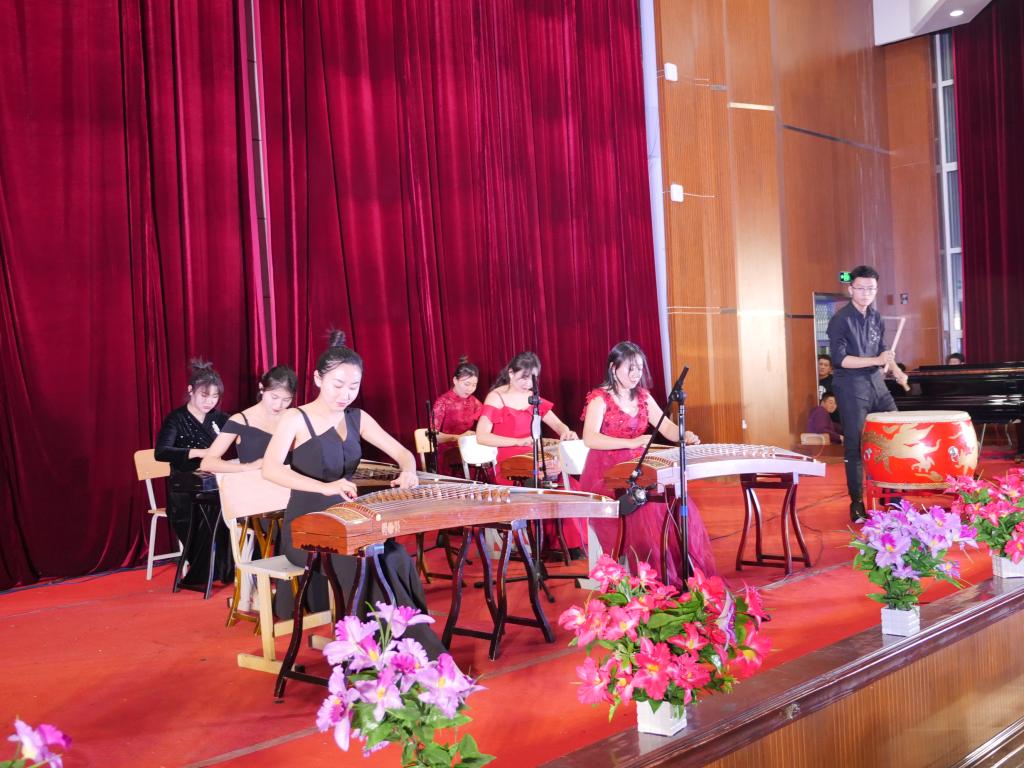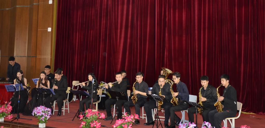 音乐会在艺术学院民乐团轻盈欢快的合奏《喜洋洋》和《花好月圆》中正式拉开帷幕。男生独唱《我的太阳》,打击乐齐奏《鼓威》,鼓声阵阵,气势磅礴,带动了全场的气氛。笛子齐奏《扬鞭催马运粮忙》,长笛和钢琴协奏《莫扎特D大调长笛协奏曲》等一个个精彩的曲目激情演奏,表演者们用独具特色的梦幻之声感染着现场的每一位观众。男生独唱《你不要再去做情郎》,萨克斯独奏《回家》声音魅力令人难以抗拒,好像在诉说着动人心魄的故事。古筝齐奏《战台风》,女声独唱《春天的芭蕾》将真情实感注于声音表演之中,用乐器说话,用歌声寄托情感,引得在场观众掌声不断。管乐合奏《摇摆的钟》和《千与千寻》,歌曲《如果有来生》、马头琴独奏《回想曲》等一首首经典歌曲把在场的观众带到声乐艺术的殿堂。琵琶独奏《十面埋伏》运用琵琶与中国大鼓的巧妙结合,将整场演出推向了高潮引得现场观众阵阵欢呼。男女生二重唱《饮酒歌》歌声婉转动听,将独具韵味的民族特色呈现的淋漓尽致。合唱团用嘹亮的歌声唱响红色歌曲《美丽的夏牧场》和《走向复兴》讴歌峥嵘岁月、展望美好未来,为新中国成立70周年献礼。