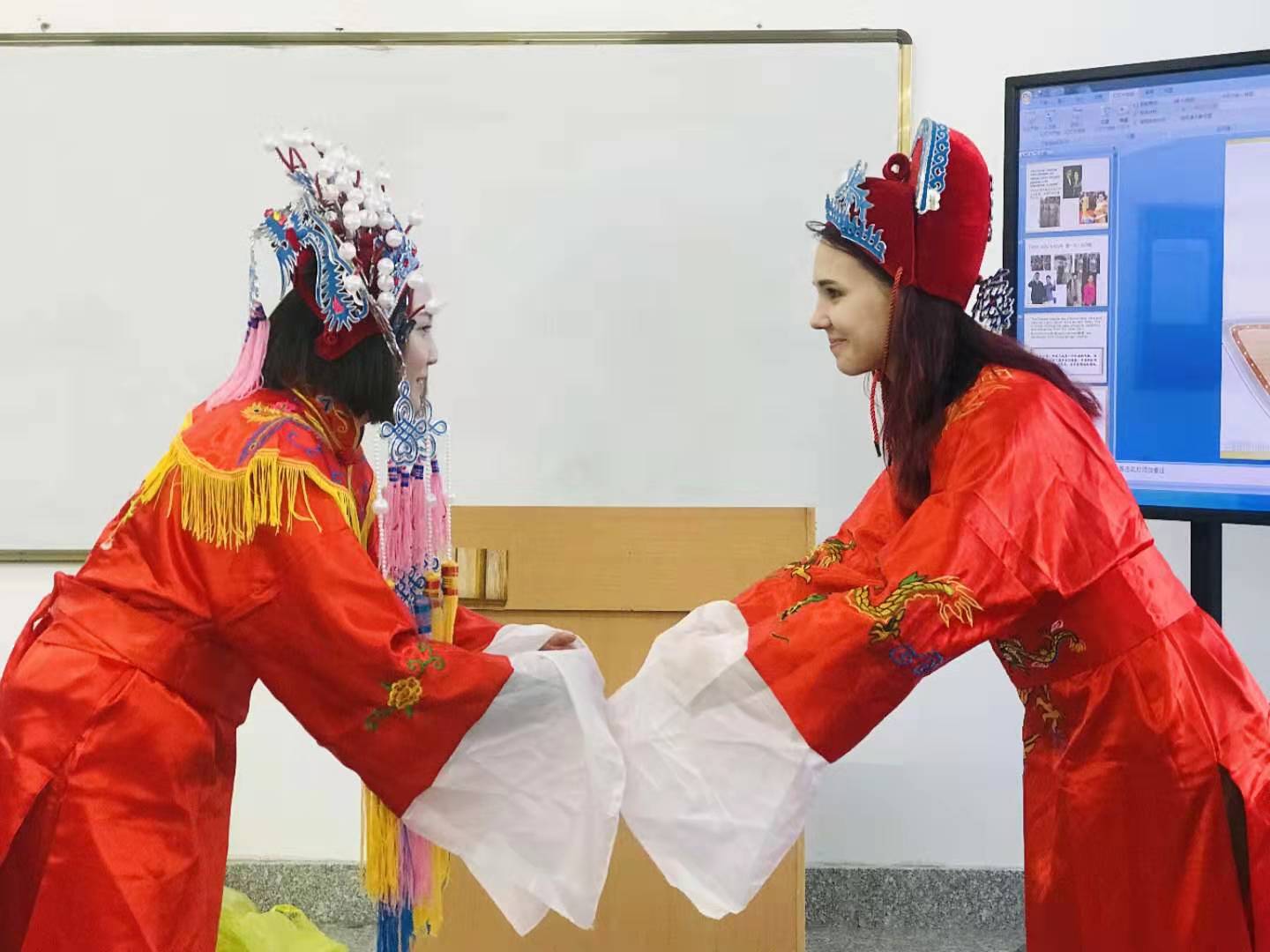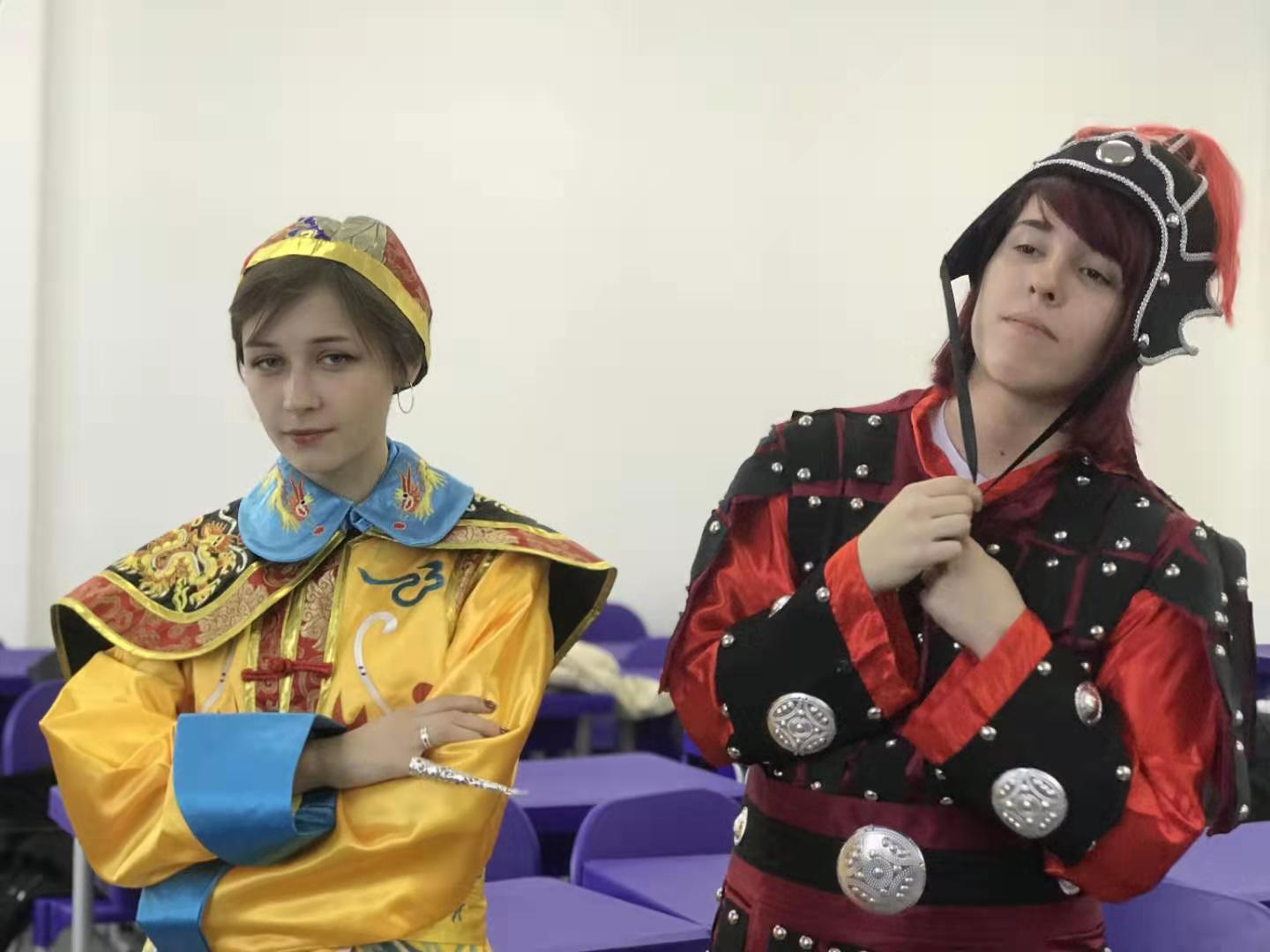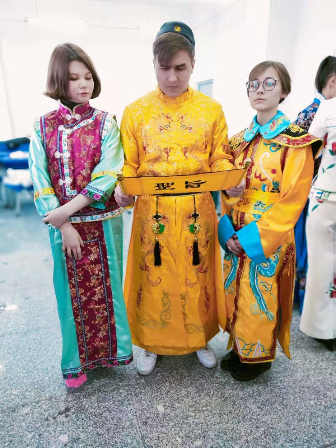 在学习礼仪后,老师为同学们准备了多个主题的历史情景剧。留学生纷纷换上自己喜欢的角色服饰开始排练。同时通过情景剧融入古代角色,在潜移默化中帮助留学生理解懂礼仪、明孝悌、立远志的中国传统文化思想的课程目标。