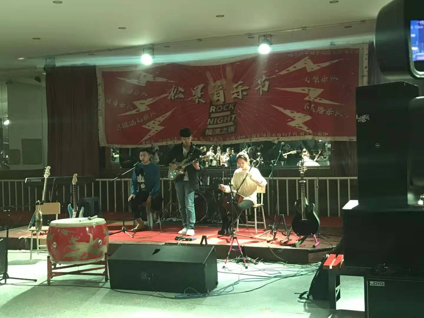 首届松果音乐节由艺术学院实践基地协办,LIVE HOUSE与表演创新实验室承办,由实验室负责人刘帝同学统筹与策划,共有五支乐队参加演出,分别有带来劲爆开场的回音乐队、把音乐节推向高潮的不迷路乐队、引爆全场的叁肆乐队、校外特别演出的支梨乐队和最后压轴出场的思维混乱乐队。