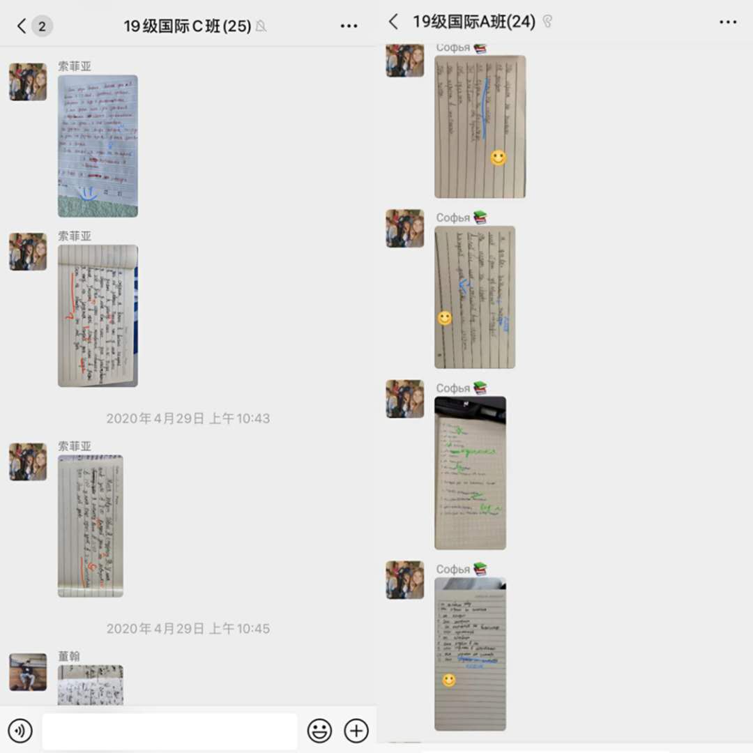 新年伊始,一场突如其来的疫情,给全国的学生放了一个特殊的寒假。根据教育局要求,按照学校延时开学教学工作方案,坚持教师线上指导与学生居家自主学习相结合,国际教育学院俄语教研室经过讨论与准备,开展了有序的线上教学工作,授课方式采用钉钉直播、腾讯会议、微信平台授课。岁月不居,时节如流。自开启宅家学习的模式至今,国际教育学院线上教学已进入第九周,经过了两个多月的“磨合期”,国际本科班的课程正在稳步进行中。
