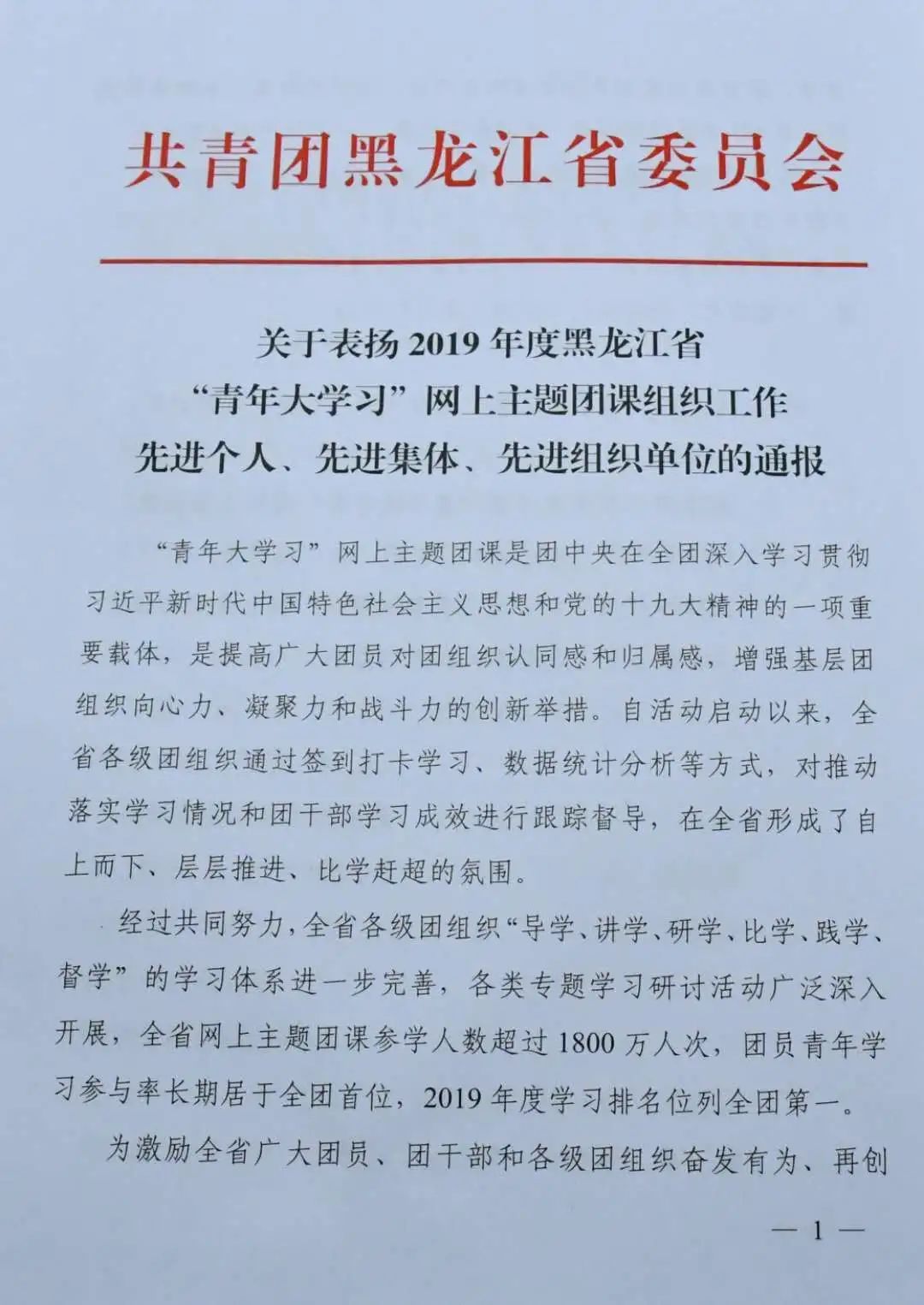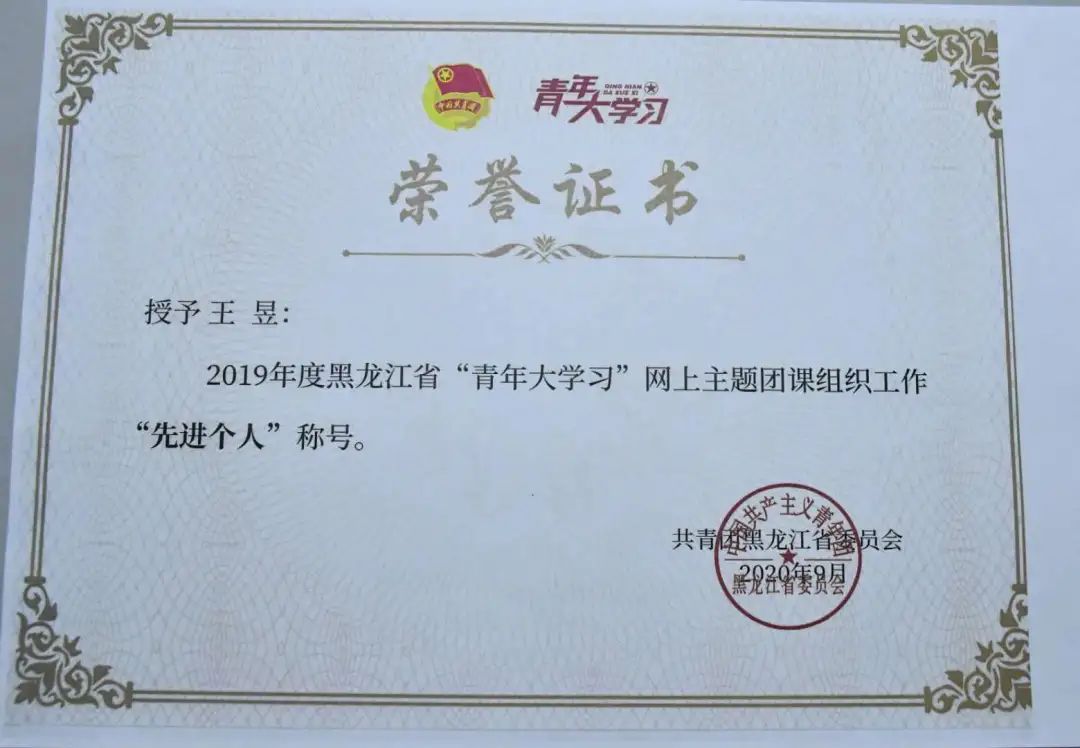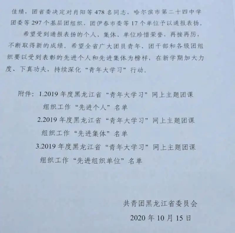 近日,由共青团黑龙江省委员会组织的“2019年度黑龙江省‘青年大学习’网上主题团课组织工作‘先进个人’‘先进集体’评选结果公布。冰球官网3个集体获 “先进集体” 荣誉称号,5位教师获“先进个人”荣誉称号。