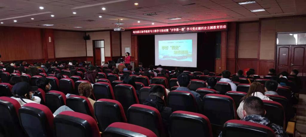 此次主题教育活动由马克思主义学院院长宋玉玲教授担任主讲教师,她指出学好“四史”,培根铸魂。作为青年人的我们要更加认真学习四史的成功经验,“传承红色基因,致敬建党百年”早日成为中国特色社会主义的合格接班人,为祖国繁荣发展贡献出自己的青春力量。