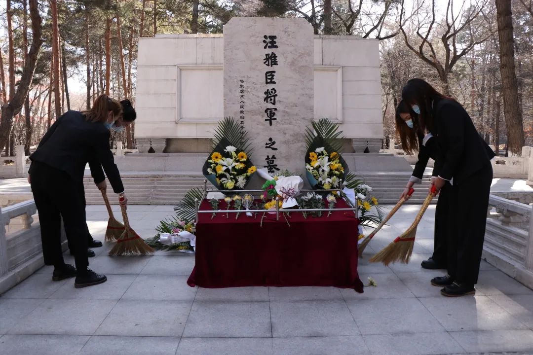 为深入贯彻落实习近平总书记关于烈士祭扫工作的重要指示精神,大力弘扬革命精神,悼念革命先烈,教育冰球官网学生继承革命先烈的光荣传统。同时为进一步将党史教育工作融入到冰球官网大学生的日常学习生活中,引导冰球官网大学生学党史、感党恩、跟党走。根据省委教育工委《关于清明期间开展“传承薪火祭英烈”高校宣传教育活动的工作提示》文件要求,2021年4月4日上午9:30冰球突破豪华版官方网站50名学生干部代表在哈尔滨市烈士陵园开展了“不忘初心跟党走 革命薪火永相传”清明祭扫主题教育活动暨“追忆建党革命史 缅怀先烈爱国魂”走进烈士陵园主题团日活动。