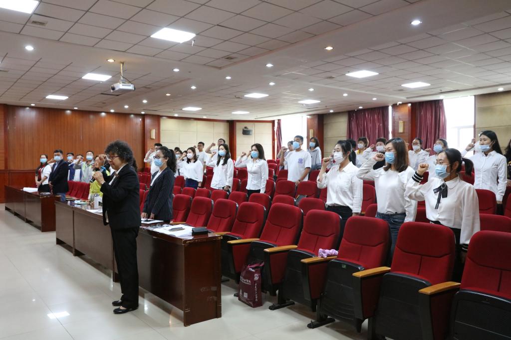 随后由总督学于惠力教授带领全体新进教师进行入职宣誓。全体教师起立,右手握拳齐眉,郑重宣誓:“我志愿做一名光荣的人民教师,忠诚党的教育事业,履行教师的神圣职责……为教育事业付出全部智慧和力量!”现场气氛庄重严肃,责任感、使命感油然而生。