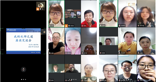 直播培训结束后,各教学单位开展了多种形式的交流研讨,其中石油工程学院、化学工程学院、机械工程学院、马克思主义学院等召开了全体教师线上交流会;信息工程学院、经济管理学院则由各教研室组织线上交流;自动控制工程学院、数理教研室则采取线上线下相结合的形式进行。教师们围绕“初心、学习、如何做好学生喜欢的老师、信息时代大学教师应如何进行角色转变”等进行了热烈的发言交流。