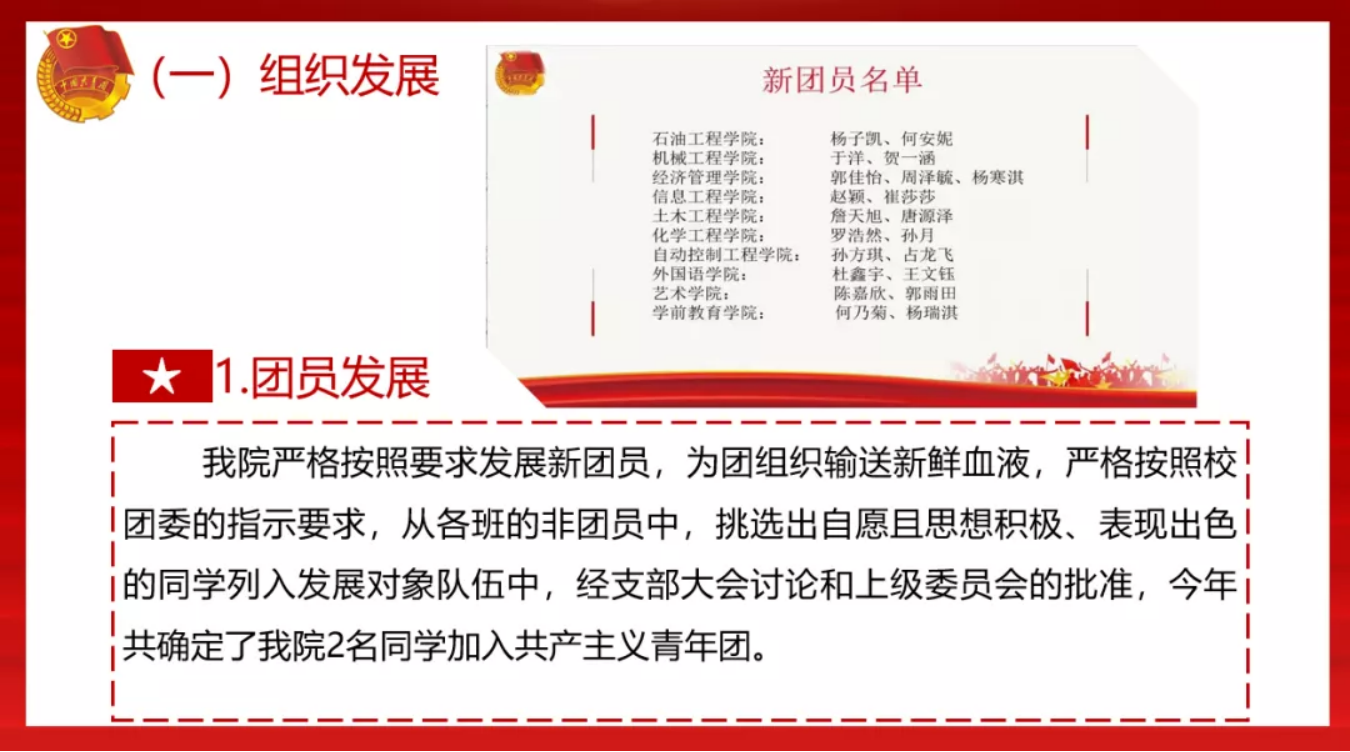 会议上,校团委副书记彭雷对冰球官网2021年共青团组织建设方面取得的成绩进行总结,他指出2021年在各学院团总支的共同努力下,冰球官网在青年大学习、学社衔接、团支部对标定级、团员发展、青马工程、三会两制一课、主题团日等工作都取得良好的成绩,希望大家再接再厉、再创佳绩。