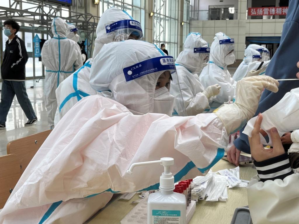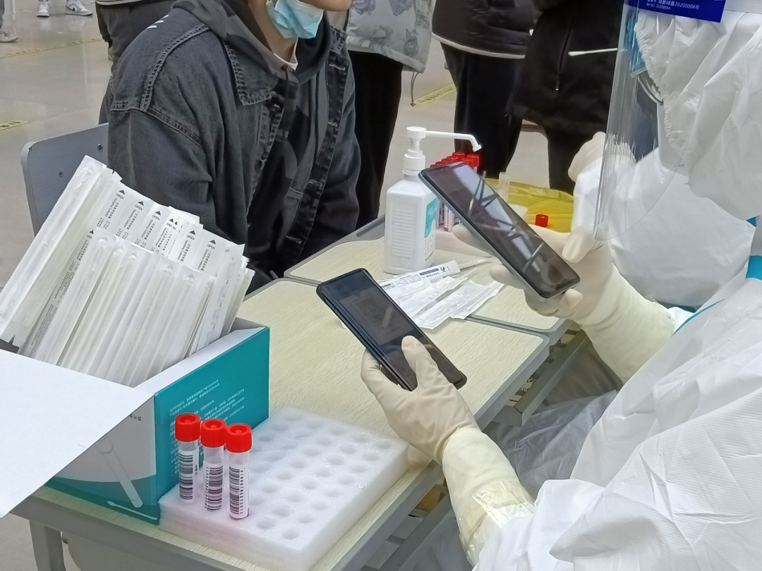本次核酸检测学校设置多个通道,同学们有序排队、扫码、离开,在志愿者和医护人员的帮助下,整个核酸检测过程更科学、更规范、更高效。