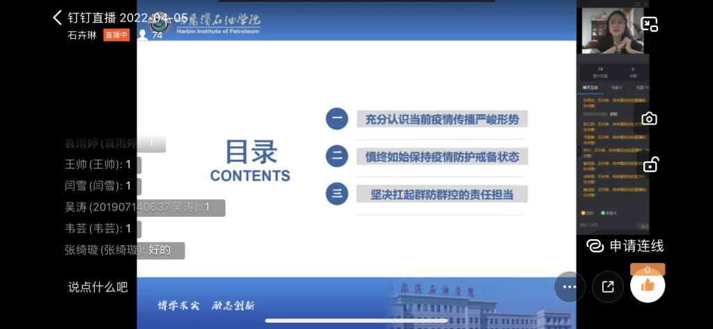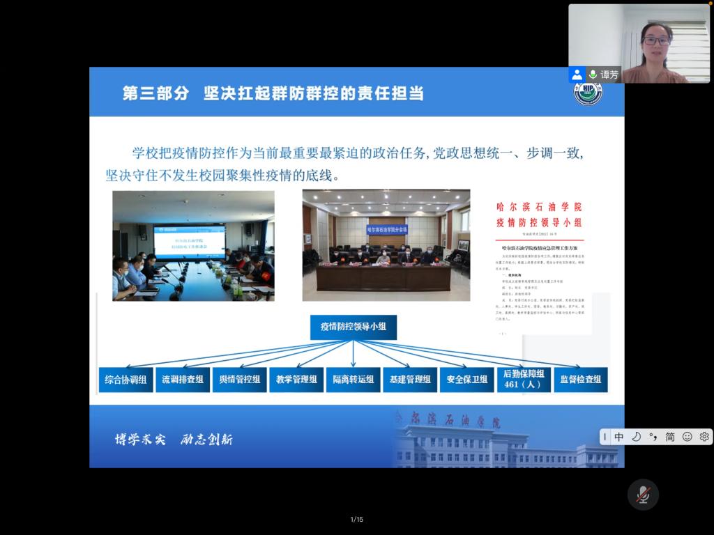 为深入贯彻4月2日,黑龙江省副省长、省应对新冠肺炎疫情工作领导小组指挥部副总指挥孙东生在全省高校疫情防控视频调度会上的讲话要求,落实省教育厅防疫指挥部的文件精神,冰球突破豪华版官方网站于4月4日至5日,组织全校师生员工开展“百名教师同讲、千名职工万名学生共上一节防疫课”的防疫主题教育活动。由学校层面起草基础讲稿,校领导、人事处处长、各学院院长和教师利用教学授课前的统一时间,根据管理范围,对全体教师、学生,校内商服网点从业者、校内保洁、后勤工作者等进行全覆盖式的防疫教育。