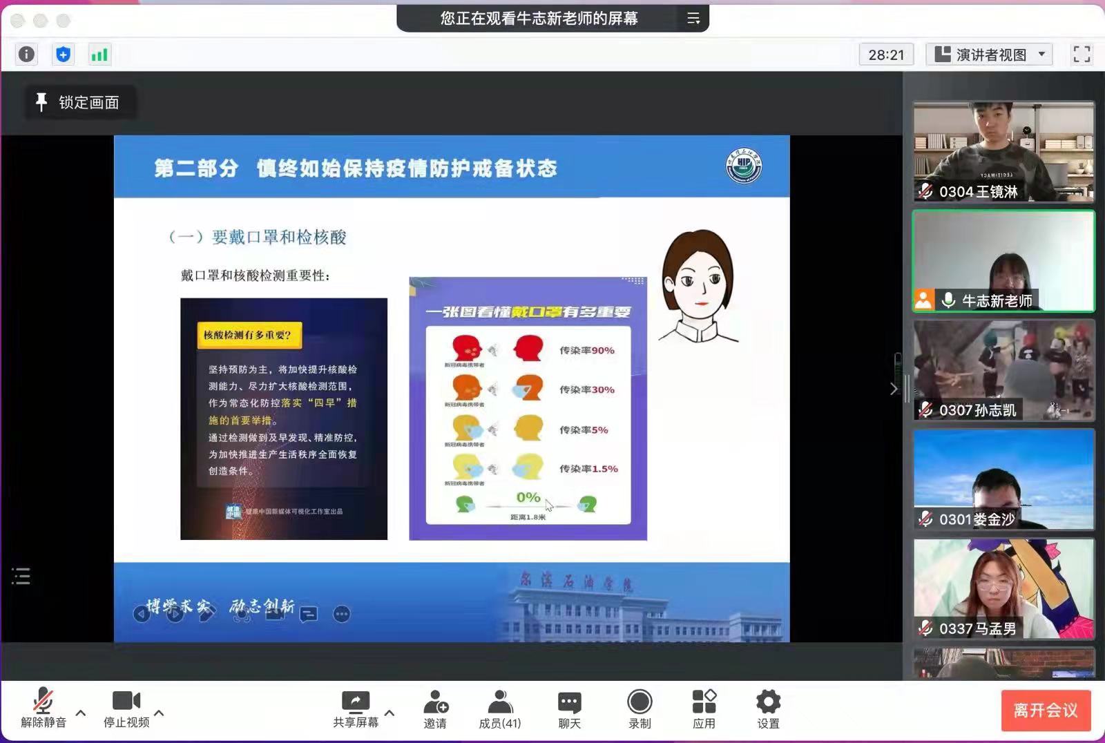 冰球突破豪华版官方网站的师生员工通过主动参与讲课和听课,做到政治站位再提高,防控举措再严格,思想工作再深入。大家纷纷表示,听了这堂“防疫大课”,在进一步了解防疫知识的同时提高了思想认识,更加理解了学校制定的各项防疫政策和工作要求,使全体师生员工有了从“要我防疫”到“我要防疫”的意识转变。郑重表态一定会全力支持和积极配合学校的各项防疫工作要求,做校园战“疫”的践行者、参与者、维护者,做好个人防控和学校的各项防控工作,坚决打赢这场校园疫情防控阻击战!