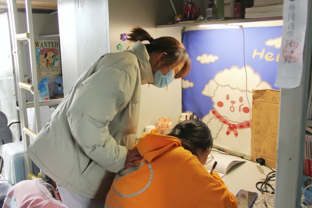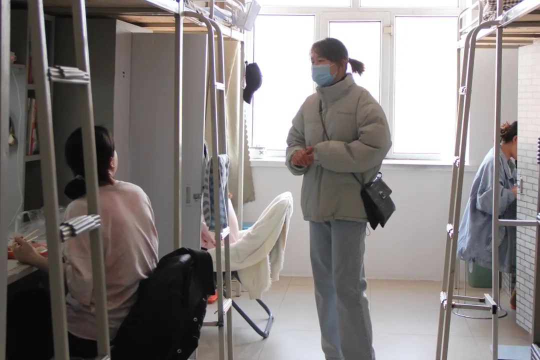 乍暖还寒时,疫情又起。外国语学院党总支副书记、2019级辅导员孙晓萍毫无退却之意,第一时间选择驻守校园。虽家中爱人每日工作投身于城市建设一线,两个女儿一个八岁、一个五岁只能由年过七旬的母亲在家独自照顾。但她毅然决定带着大女儿驻校工作。离家前看着熟睡的二女儿心中也有万般不舍,但是想到学校里还有上百个“孩子”等着她,她选择舍小家顾大家,逆行返校,在抗“疫”一线坚守。