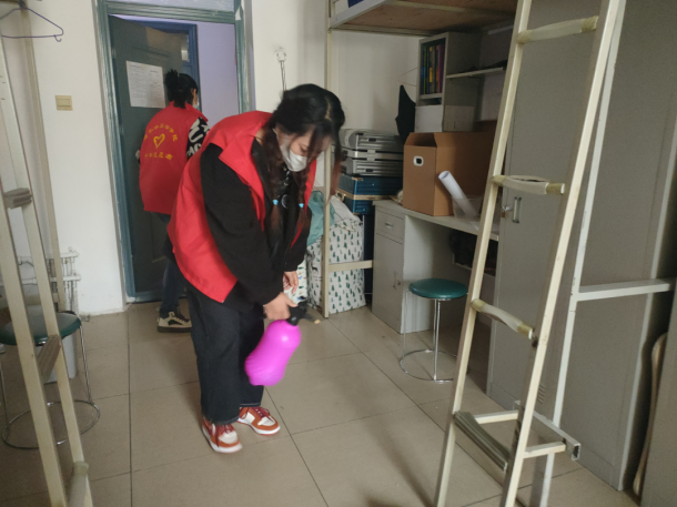 弘扬和传承雷锋精神一直是机械工程学院志愿者协会的底色,为了营造良好的学习生活环境,加强对感冒等季节性传染病的预防,切实保障疫情期寝室卫生安全,机械工程学院17名志愿者再次出击,对学生公寓进行消杀工作。活动前期,负责人充分统筹安排,将志愿者进行分组,并要求大家做好自身防护。志愿者们严格按照消杀要求,对各寝室进行全方位全覆盖的消杀工作,不放过每一个角落。同时还对走廊等人流量较大的公共区域进行了消杀,并在消杀后叮嘱同学们保持宿舍内空气流通。