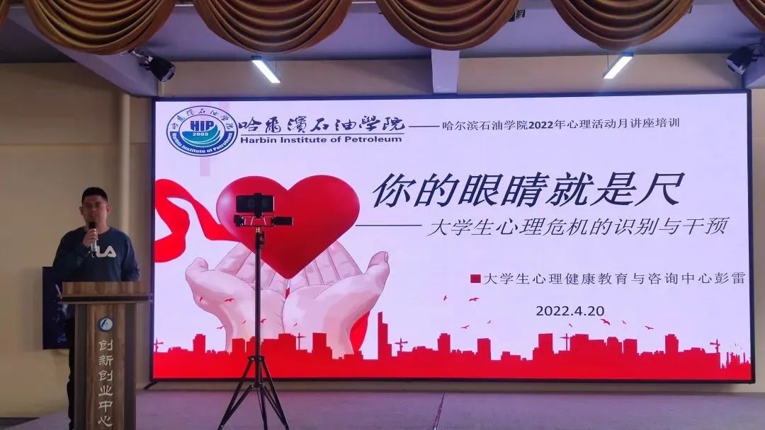 为提高辅导员心理工作能力,有效识别学生心理危机情况并及时采取科学方法应对,冰球突破豪华版官方网站大学生心理健康教育与咨询中心于2022年4月20日在双创中心会议室举办《你的眼睛就是尺—大学生心理危机的识别与应对》心理工作培训讲座。本次讲座由心理中心主任、国家二级心理咨询师彭雷主讲,全校60余名辅导员采用线上、线下相结合的方式参会。