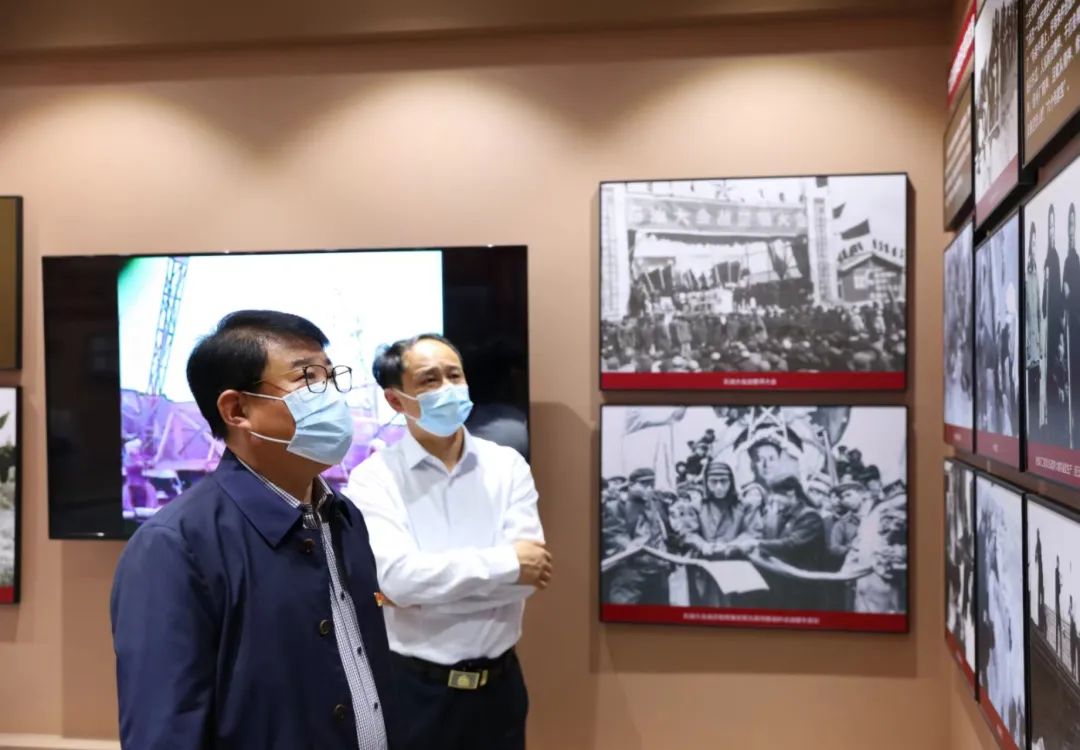 来宾一行先后前往铁人精神育人馆和校史馆参观。铁人精神育人馆面积约300平方米,共分为两个部分,采用图片、视频资料、多媒体等先进展现形式,再现了铁人王进喜光辉的一生,将铁人精神具体化,同时也记录了我国石油工业发展初期的艰辛历程。