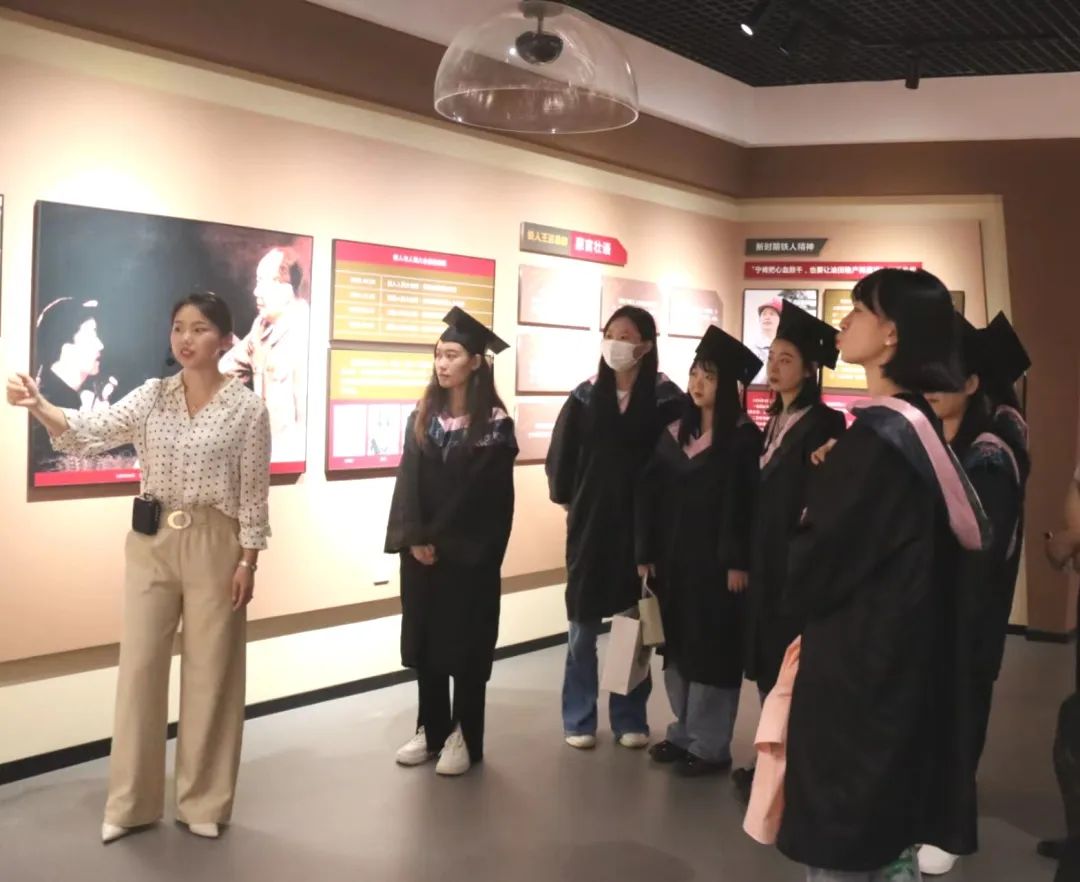 在铁人精神育人馆,毕业生聆听了 “手提肩扛运设备”、“瓢舀盆端取用水”、“身搅泥浆压井喷”等铁人的英雄故事,重温了铁人战天斗地、无私奉献的壮志豪情。参观过程中,林立民书记叮嘱大家在工作岗位中要心怀祖国、不懈奋斗、常怀感恩之心,坚定不移听党话、感党恩、跟党走,用青春的汗水抒写家国情怀,把满腔报国之志转化为工作业绩,不断奉献祖国、奉献人民。