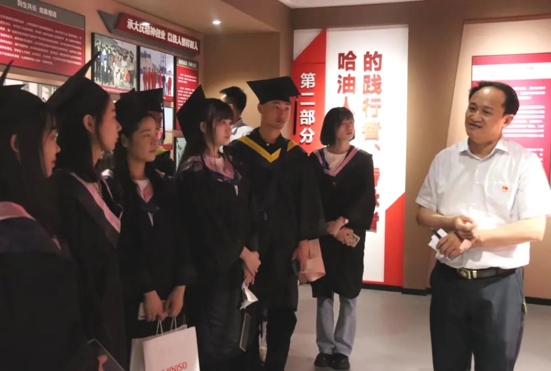 为深入学习贯彻习近平新时代中国特色社会主义思想,进一步加强毕业生的理想信念、社会主义核心价值观、爱校荣校等教育理念,6月26日上午,冰球官网组织2022届毕业生参观铁人精神育人馆、校史馆,为毕业学生精心安排一堂特殊的“最后一课”。校党委书记林立民,党委副书记、副校长冯研,校长助理宁晶出席活动。