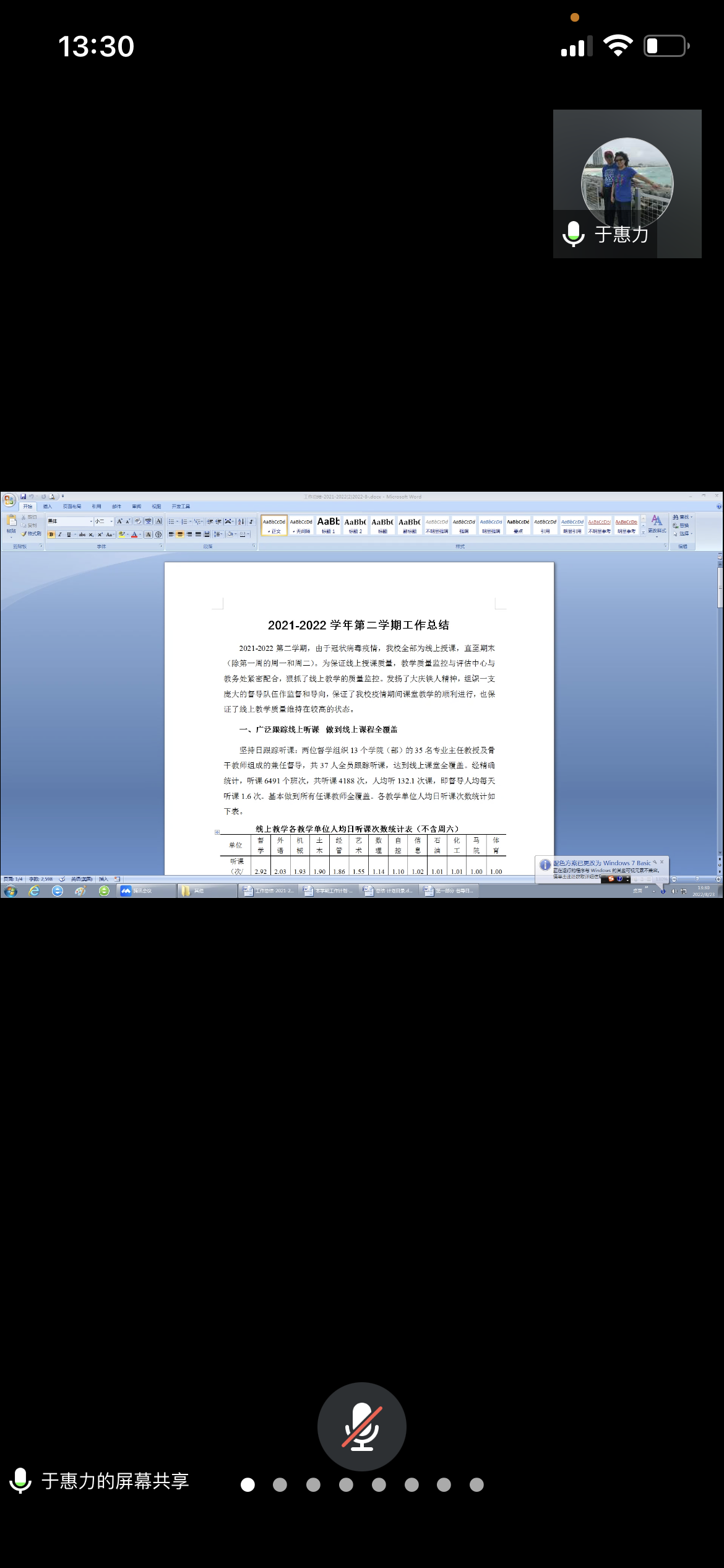 会上,校总督学于惠力对2021-2022第二学期的听评课及督导工作进行了全面且细致的总结,对2022-2023第一学期的相关工作包括前三周的线上教学工作均提出了相关要求,并对即将开展的试卷评估、毕业论文(设计)评估工作进行了详细的说明,为进一步做好教学督导工作提供了良好的指引。