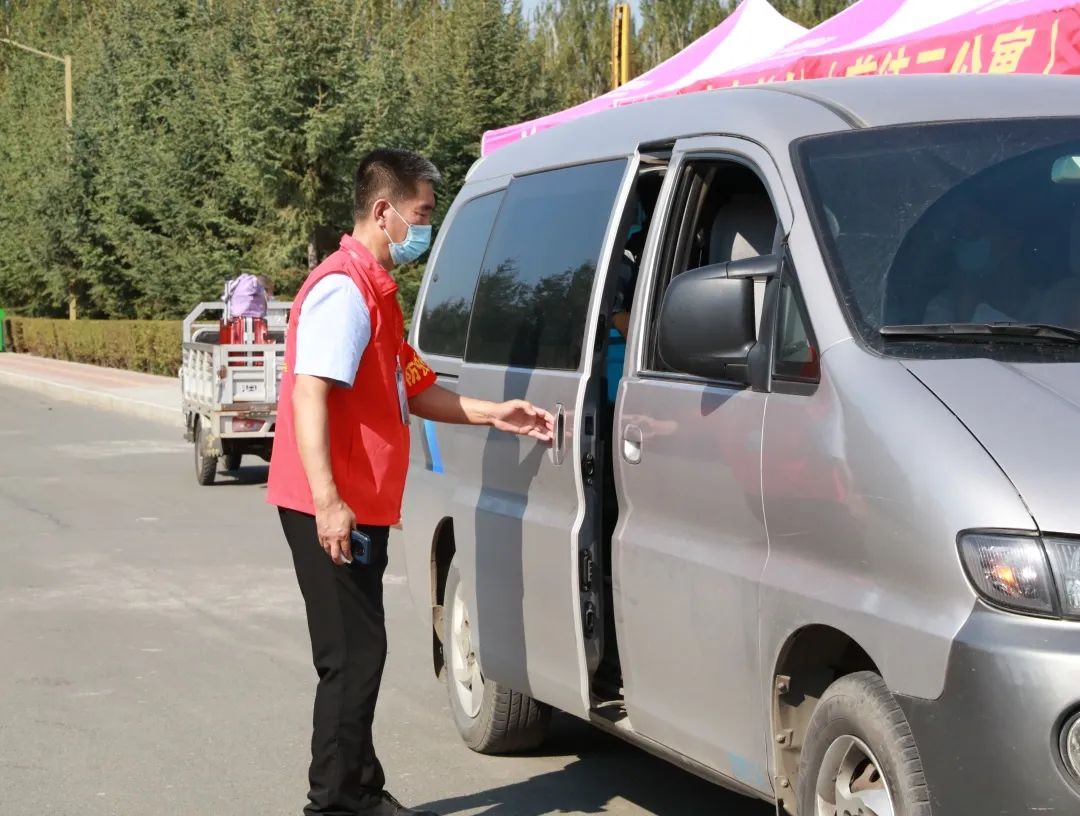 由于第一批次返校报到的新生到校后须进行为期三天的静默管理,学校专门在南门入校口安排接驳车,点对点接送乘私家车到校的学生至二公寓和六公寓。