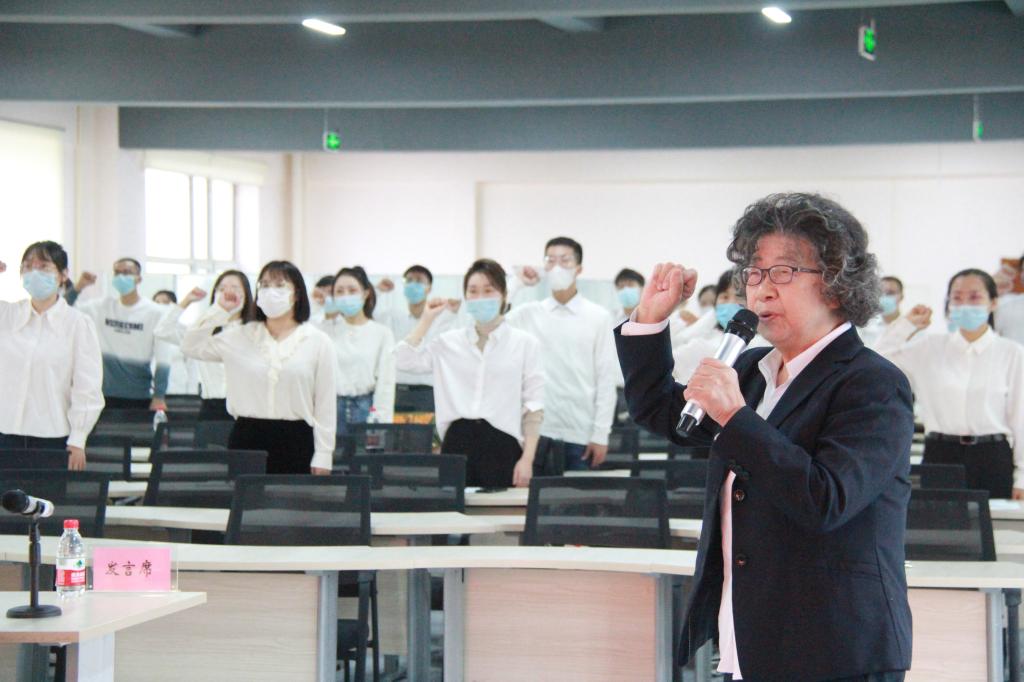 随后由总督学于惠力教授带领全体新进教师进行入职宣誓。全体教师起立,右手握拳齐眉,郑重宣誓:“我志愿做一名光荣的人民教师,忠诚党的教育事业,履行教师的神圣职责……为教育事业付出全部智慧和力量!”现场气氛庄重严肃,责任感、使命感油然而生。