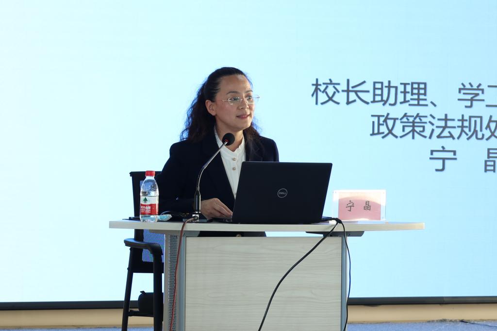 9月24日下午,相关职能部门为新教工进行了政策制度解读。校长助理、党委行政办公室主任、宣传统战部部长康平军对党的教育方针和学校章程进行了解读;人事处处长、教师工作部部长谭芳重点将教职工考核、请假制度、工资制度等涉及教师切身利益的问题做了介绍;教务处顾处长对教学管理方面的文件进行了解读;校长助理、学工处处长、政策法规处处长宁晶对学生管理相关制度、教师如何同辅导员紧密配合做好学生管理工作等进行详细的讲解。
