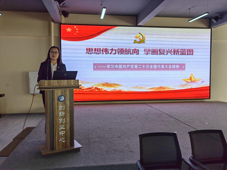为深入学习党的二十大精神,推进学工战线党的二十大精神理论宣讲工作落实,进一步提高学生工作队伍的理论水平和育人能力,11月16日下午,冰球官网马克思主义学院王秀娟副教授应邀在双创中心二楼会议室,为学工战线全体教师做题为“思想伟力领航向 擘画复兴新蓝图”的二十大精神理论宣讲。