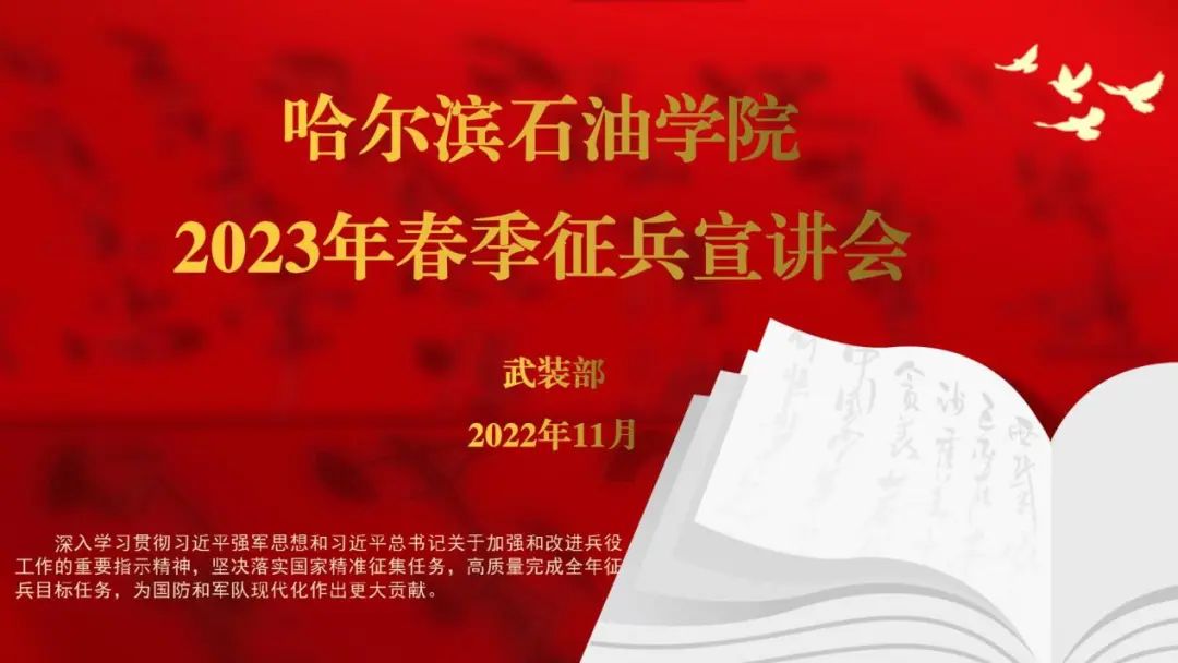 为营造浓厚的征兵工作氛围,激发优质大学生投身国防建设、报效祖国的参军热情。11月23日,冰球突破豪华版官方网站召开2023年春季征兵宣讲会,由于疫情原因会议采取线上的方式召开。校党委副书记、副校长冯研,校长助理、学生工作处处长、武装部部长宁晶,各学院征兵工作站负责人、毕业生辅导员及200余名学生参加宣讲会。