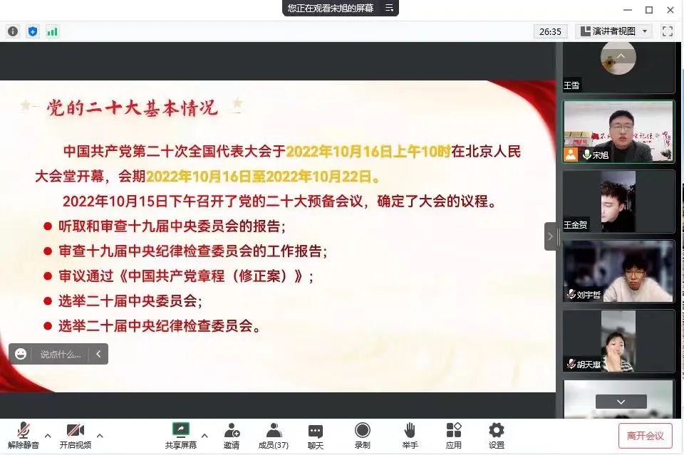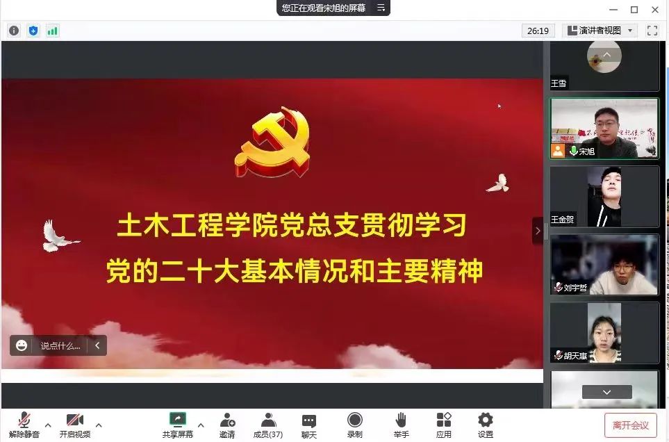 为深入学习宣传贯彻党的二十大精神,凝聚队伍共识,激发为党育人、为国育才的内在动力。近日,冰球官网土木工程学院党总支在线上组织召开学习贯彻党的二十大精神宣讲报告会。