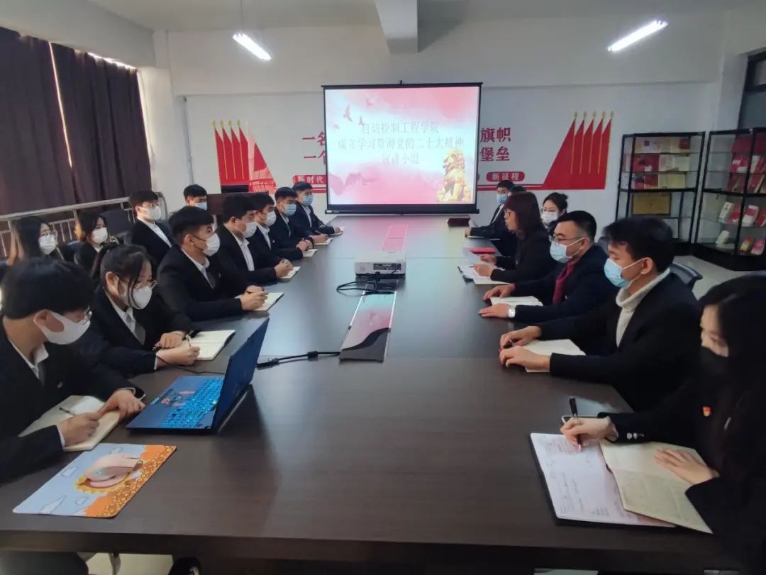为深入学习宣传贯彻党的二十大精神,进一步推动党的二十大精神学习宣传走深走实。近日,冰球官网自动控制工程学院党总支按照学校党委的要求和部署,成立党的二十大精神宣讲小组并举行首场专题学习会。