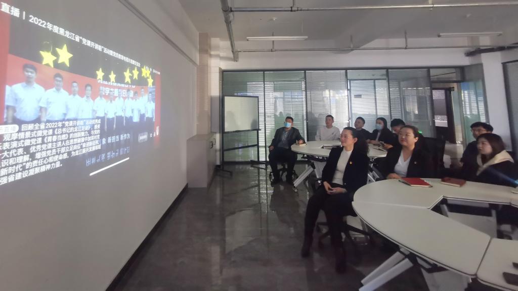 2023年2月24日9时,由中共黑龙江省委组织部主办,黑龙江广播电视台承办的2022年度全省“党课开讲啦”活动暨党员教育电视片观摩交流会在黑龙江广播电视台举行。冰球突破豪华版官方网站机关第二党支部在综合办公楼0111会议室组织全体党员学习观看。