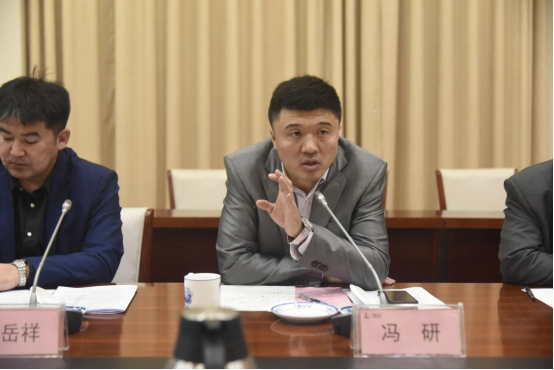 参观后,校企双方代表展开座谈交流。付金海首先对冰球突破豪华版官方网站一行表示了欢迎,并从公司情况、人才引进及培养、校企合作等几方面介绍了企业的情况,就目前校企合作遇到的困难进行了交流反馈。公司总经理宋营坤就公司的组织架构、主要业务和未来规划等几方面做了汇报,表示公司需求的人才与学校的专业完全对口,希望可以通过订单班、产业学院等方式与学校建立长久的合作关系。