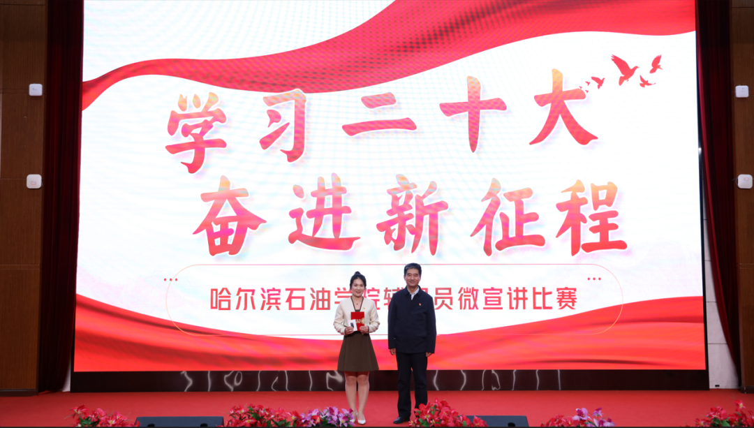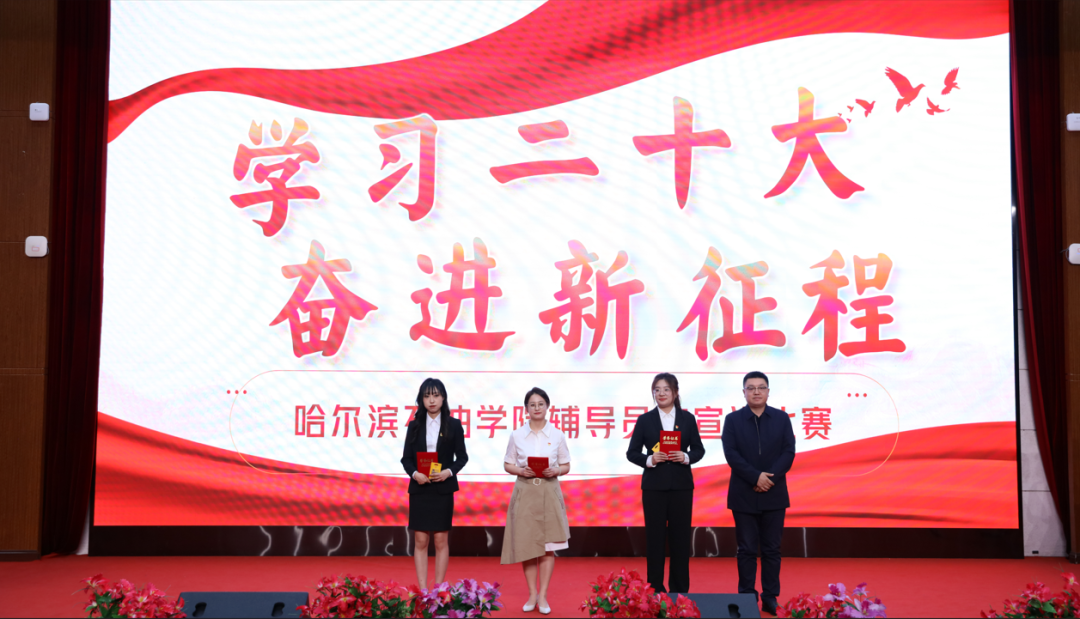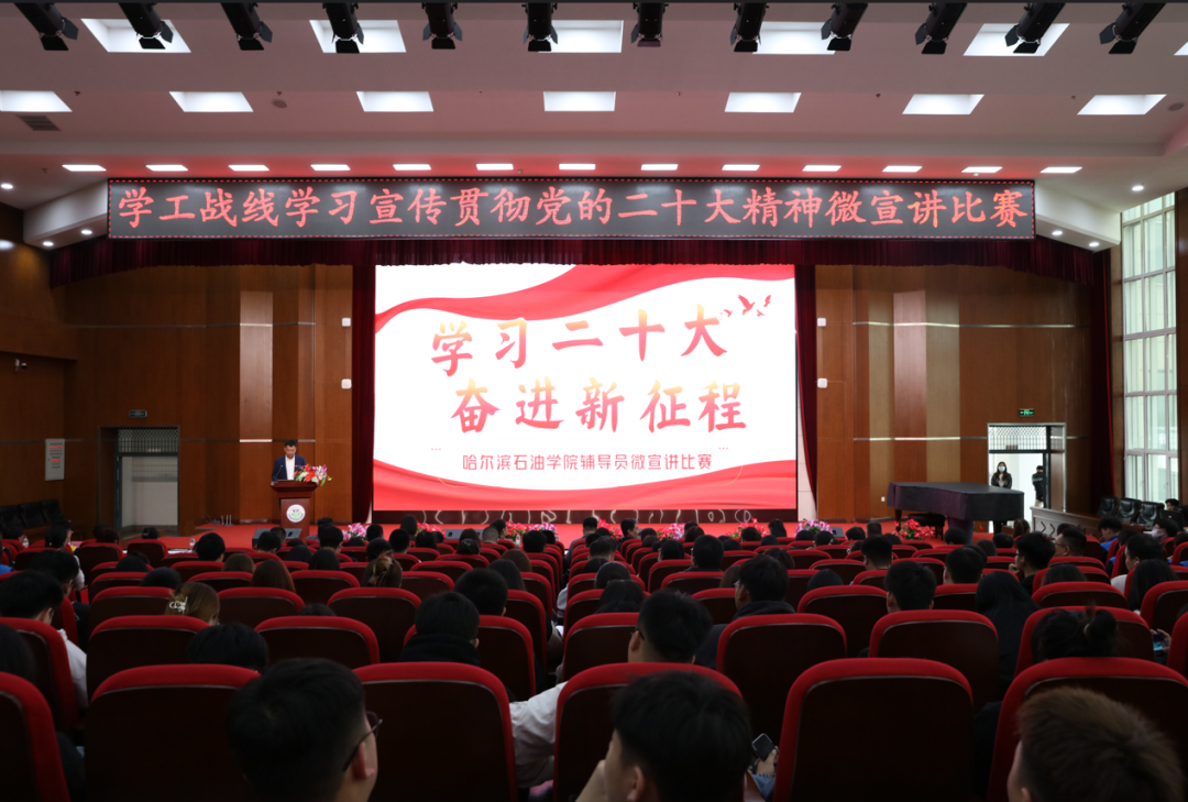 为深入学习宣传贯彻党的二十大精神,进一步提高冰球官网辅导员的理论宣讲水平,冰球突破豪华版官方网站于2023年4月19日下午,在图书馆报告厅成功举办“学习二十大,奋进新征程”辅导员微宣讲比赛。党委副书记、纪委书记刘铎,校长助理康平军,校长助理宁晶现场观摩了比赛。本次比赛评委分为专家组和学生组。专家组评委由哈尔滨师范大学马克思主义学院辅导员、2021年全国最美高校辅导员刘国权,冰球官网马克思主义学院院长吴卫东、教师王秀娟,教师工作部部长谭芳,团委书记王锦石担任。学生评委来自9个学院随机抽取的非参赛辅导员所带学生。