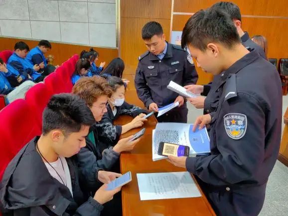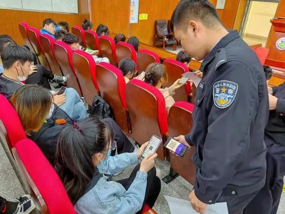 松浦派出所副所长林明警官和辖区民警邢浩警官为同学们进行了“国家反诈App”的实际操作演示,提醒同学们要有反诈骗意识,涉及金钱往来务必要提高警觉。