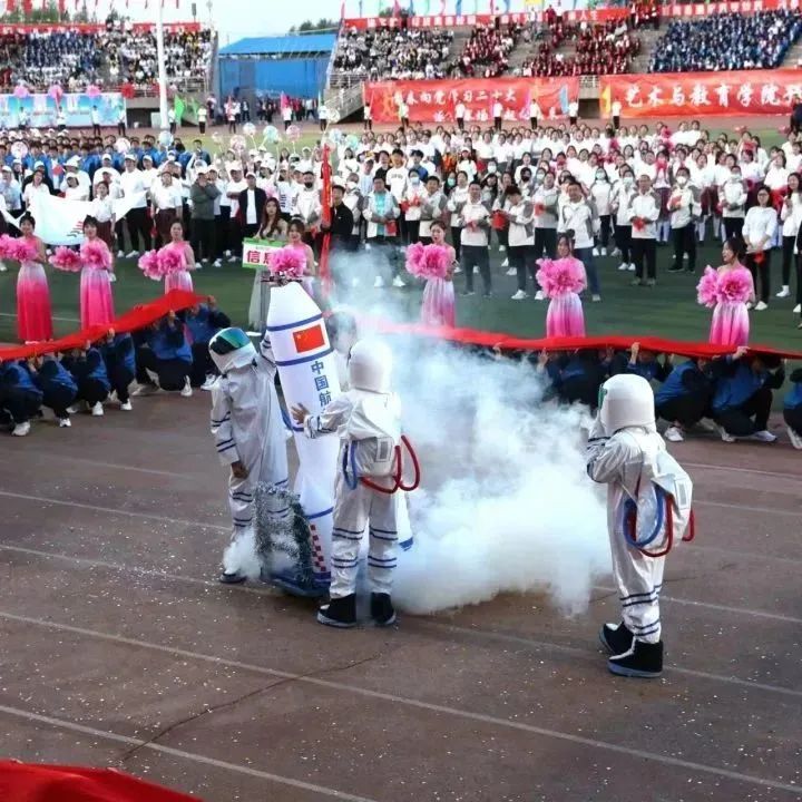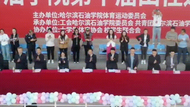 落暮无法遮掩学子们的热情,伴随着激昂有力的运动员进行曲,国旗队、刀旗队、花束队、彩旗队、各学院运动员方阵,各二级学院方阵队伍依次入场。他们精神抖擞、神采飞扬,铿锵有力的步伐、高亢嘹亮的口号充分展现了哈油学子朝气蓬勃的青春活力和昂扬向上的精神风貌。