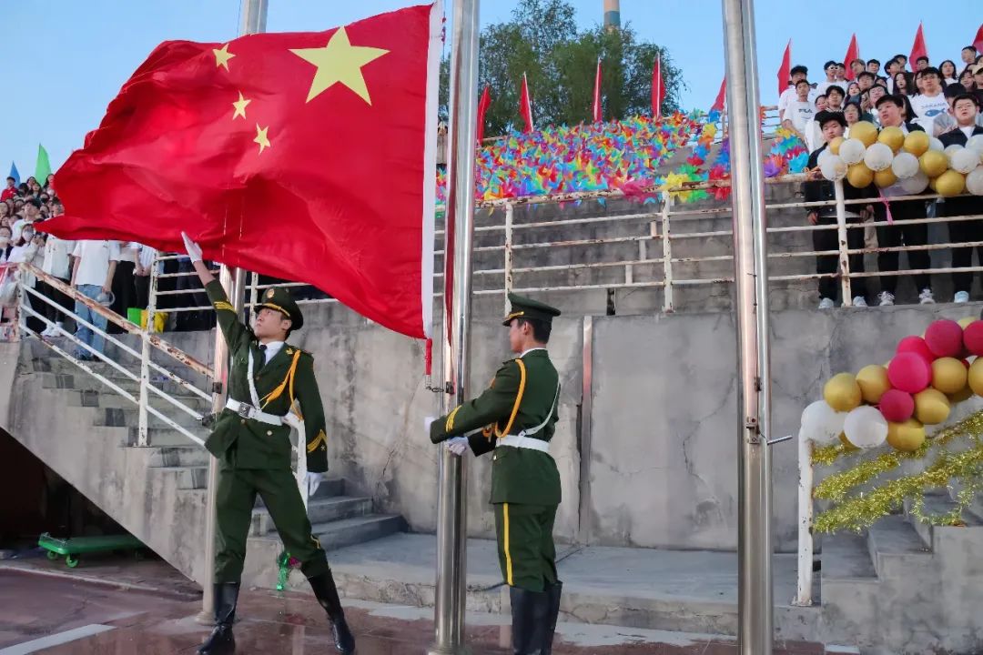 开幕式在升国旗、奏唱国歌中正式开始,国旗飘扬,歌声嘹亮。目光追随着鲜艳的红旗,雄壮歌声今朝响彻云霄。全场师生共同唱响国歌,气氛热烈而庄重。