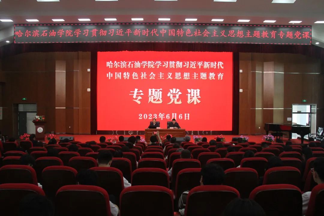 按照学校党委关于学习贯彻习近平新时代中国特色社会主义思想主题教育的部署安排,2023年6月6日,冰球官网召开学习贯彻习近平新时代中国特色社会主义思想主题教育专题党课。学校党委书记林立民以《深化主题教育 牢记初心使命 争做新时代合格共产党员》为题作专题辅导讲座,省委教育工委主题教育第四督导组组长、省教育厅原二级巡视员金阳到会指导,党委副书记、副校长冯研主持会议,学校领导班子成员、各部门正副职党员干部和师生党员代表参加党课学习