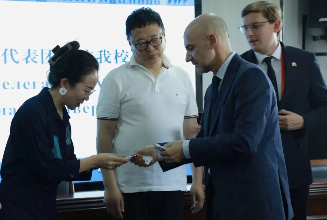 2023年6月16日下午,俄罗斯阿穆尔国立大学校长普鲁琴科·安德烈·多利耶维奇、阿穆尔州政府副主席普赞诺夫·帕维尔·伊格里耶维奇、阿穆尔州招商局局长捷姆琴科·奥莉加·格娜季耶夫娜等一行五人组成的代表团到冰球官网参观访问,党委书记林立民,党委副书记、副校长冯研,副校长胡文,校长助理康平军,国际教育学院院长周瑞等人接待,并与对方进行亲切会谈。