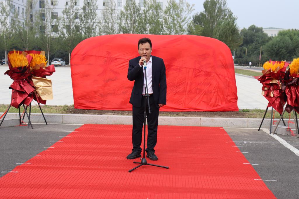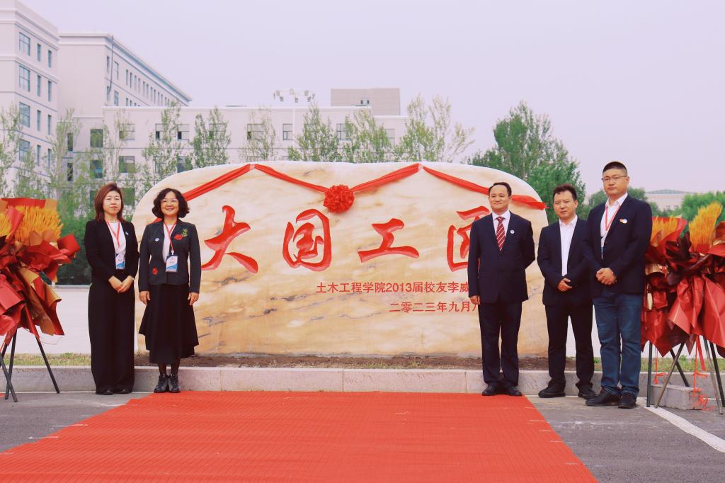 在热烈的掌声中,柴维斯校长、林立民书记、盖晓连院长、宋旭书记以及校友李威共同为“校庆石”揭下幕布。