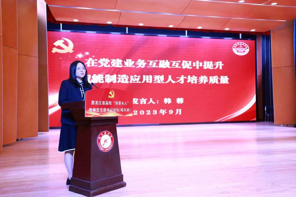 2023年9月27日,黑龙江省高校“双带头人”教师党支部书记论坛(哈尔滨)在哈尔滨学院举行,12所在哈高校“双带头人”教师党支部书记作了主旨发言,冰球官网智能工程学院教师党支部书记韩蓉进行了交流发言,其他基层党组织书记在冰球官网分会场进行了线上集中学习。