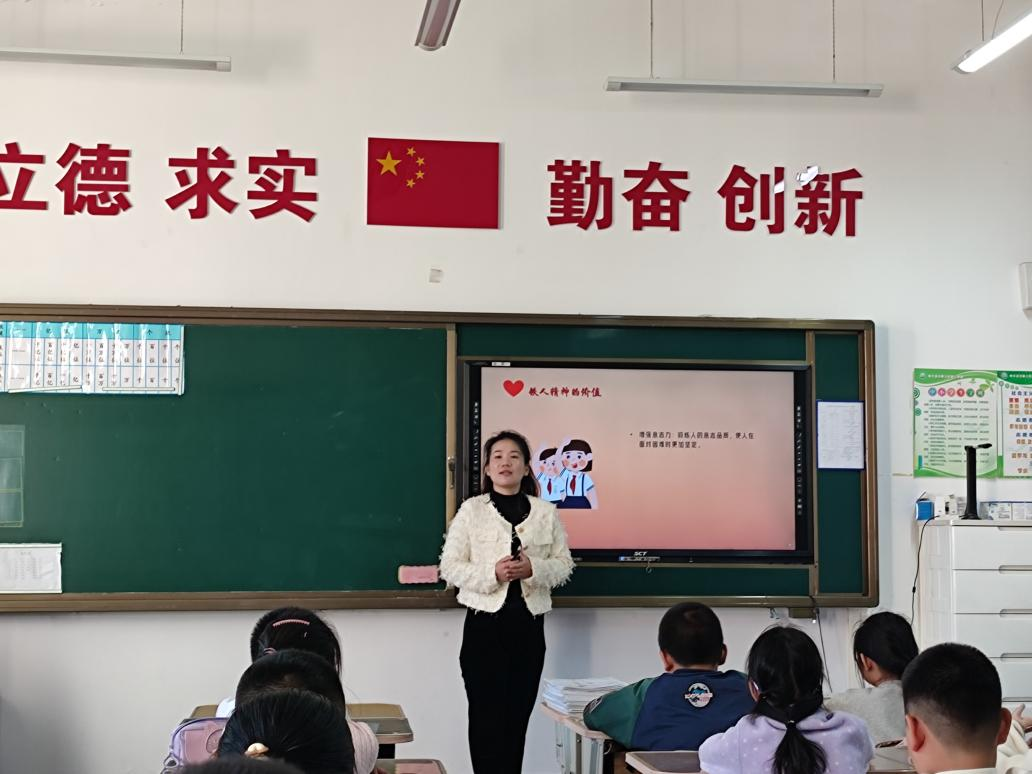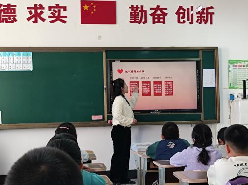 课堂上,王娜老师作为主讲人,从大庆精神、铁人精神的核心、大庆精神、铁人精神的精髓、大庆精神、铁人精神的基石3个方面对铁人精神进行深入解读,诠释了“三老四严”等党的优良传统,大庆精神、铁人精神的深刻内涵,展现了伟大精神的磅礴力量。同学们积极参与课堂学习,认真听讲,主动交流,并纷纷讲述自己所知道的铁人故事,以及对大庆精神铁人精神的理解。通过王娜老师的讲解及引导,同学们了解到了大庆精神铁人精神的背景、铁人王进喜的生平事迹、丰富内涵,深刻领会了铁人王进喜艰苦奋斗的一生。孩子们认真聆听,被铁人艰苦奋斗的精神所打动,铭记铁人的不畏惧困难的拼搏精神,珍惜当下幸福的生活,激励自己刻苦努力,为实现民族的富强而努力。