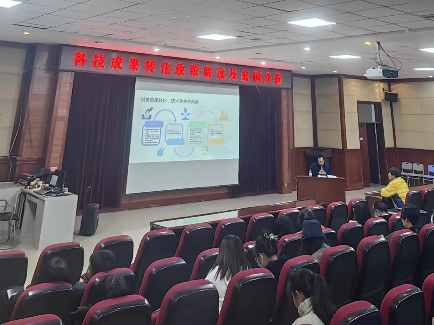 为贯彻落实《教育部 科技部关于加强高等学校科技成果转移转化工作的若干意见》、《黑龙江省高校科技成果产业化专项行动方案(2022—2026 年)》及《冰球突破豪华版官方网站高质量发展增值性评价重点指标》等文件精神,促进冰球官网科技成果转化工作,冰球官网在2023年11月14日下午举办了“科技成果转化政策解读及案例分析”专题讲座,以破解广大教师“不想转、不敢转、不会转,无序转”的难题,打开冰球官网科技成果转化工作的新局面。专题讲座由科研处相关工作负责人王可英主讲,科研管理科科长孟梁主持,全校教师参加了讲座会。