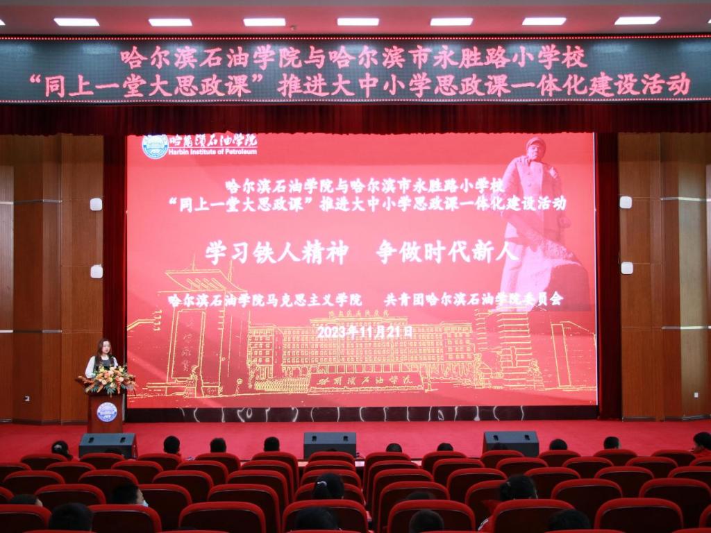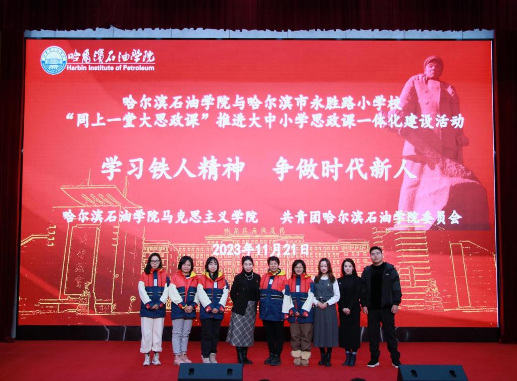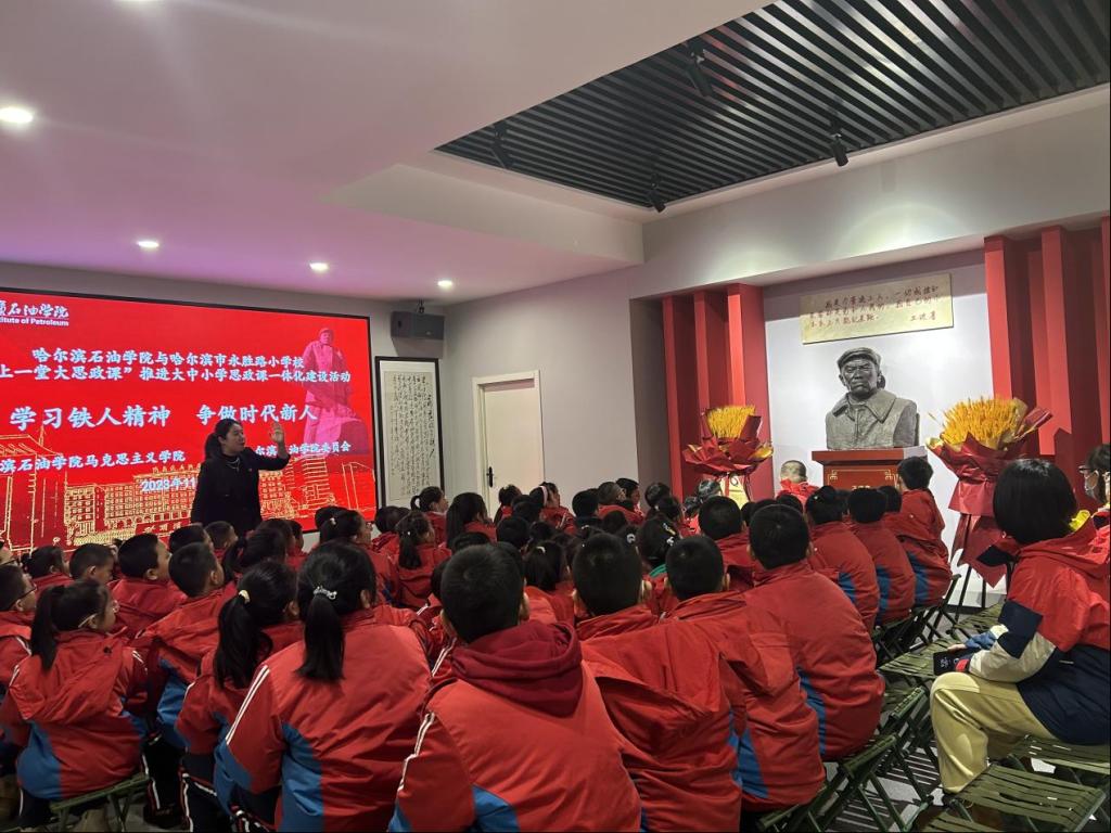 冰球官网马克思主义学院积极推进“大中小学思政课一体化”建设,立足课堂,聚焦学段衔接,促进教学理念共融、内容共通。依托校内的“铁人精神育人馆”等红色展馆资源,邀请共建学校师生参观交流,推动思政课教学资源共享,努力构建立体化“大思政课”工作格局,落实立德树人根本任务,培养德智体美劳全面发展的社会主义建设者和接班人。