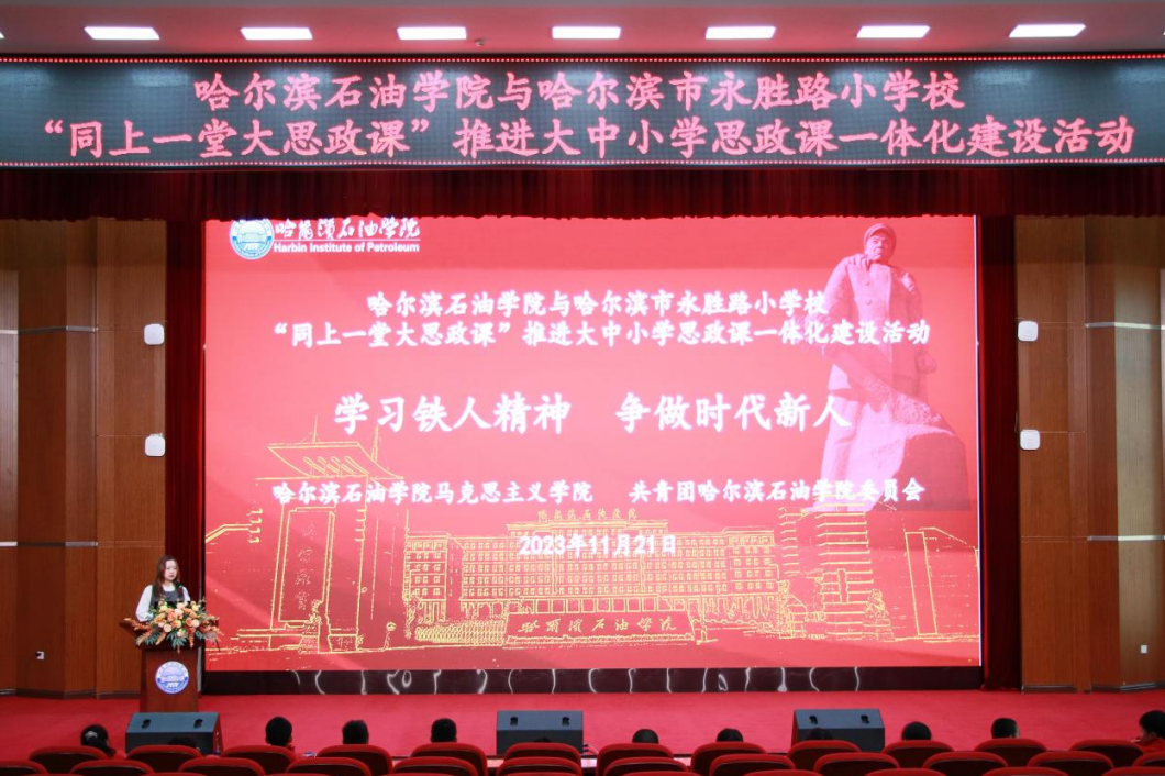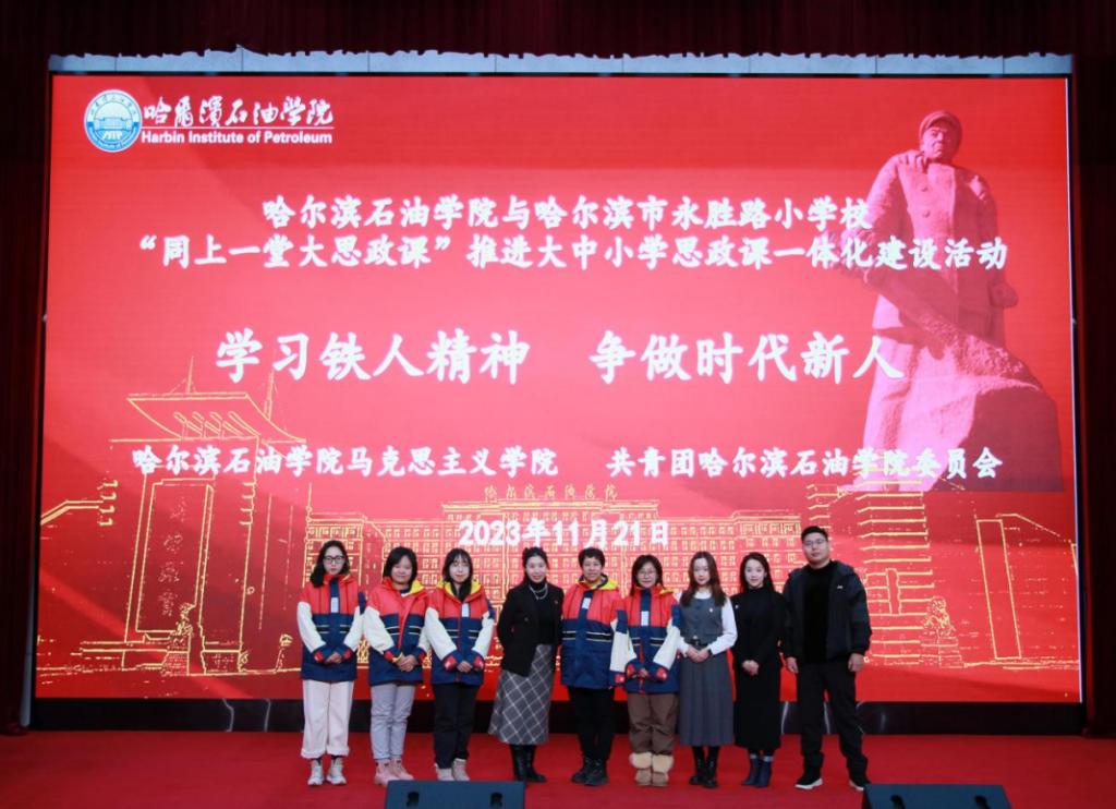冰球官网马克思主义学院积极推进“大中小学思政课一体化”建设,立足课堂,聚焦学段衔接,促进教学理念共融、内容共通。依托校内的“铁人精神育人馆”等红色展馆资源,邀请共建学校师生参观交流,推动思政课教学资源共享,努力构建立体化“大思政课”工作格局,落实立德树人根本任务,培养德智体美劳全面发展的社会主义建设者和接班人。