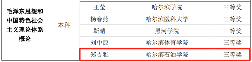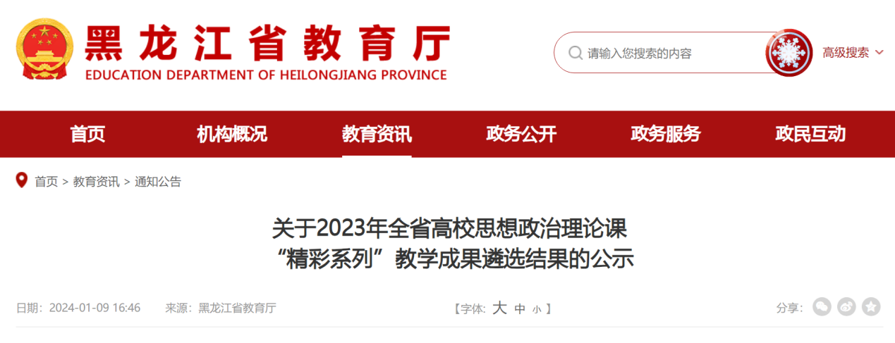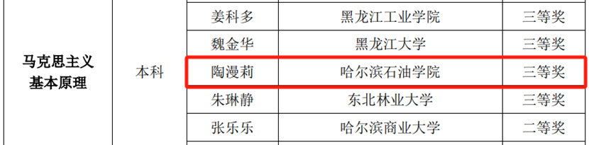 日前,由黑龙江省教育厅主办的2023年全省高校思想政治理论课“精彩系列”教学成果遴选活动结果公布,冰球官网马克思主义学院教师获评二等奖1项、三等奖3项,创下学院参与此类评选活动以来的最佳成绩。